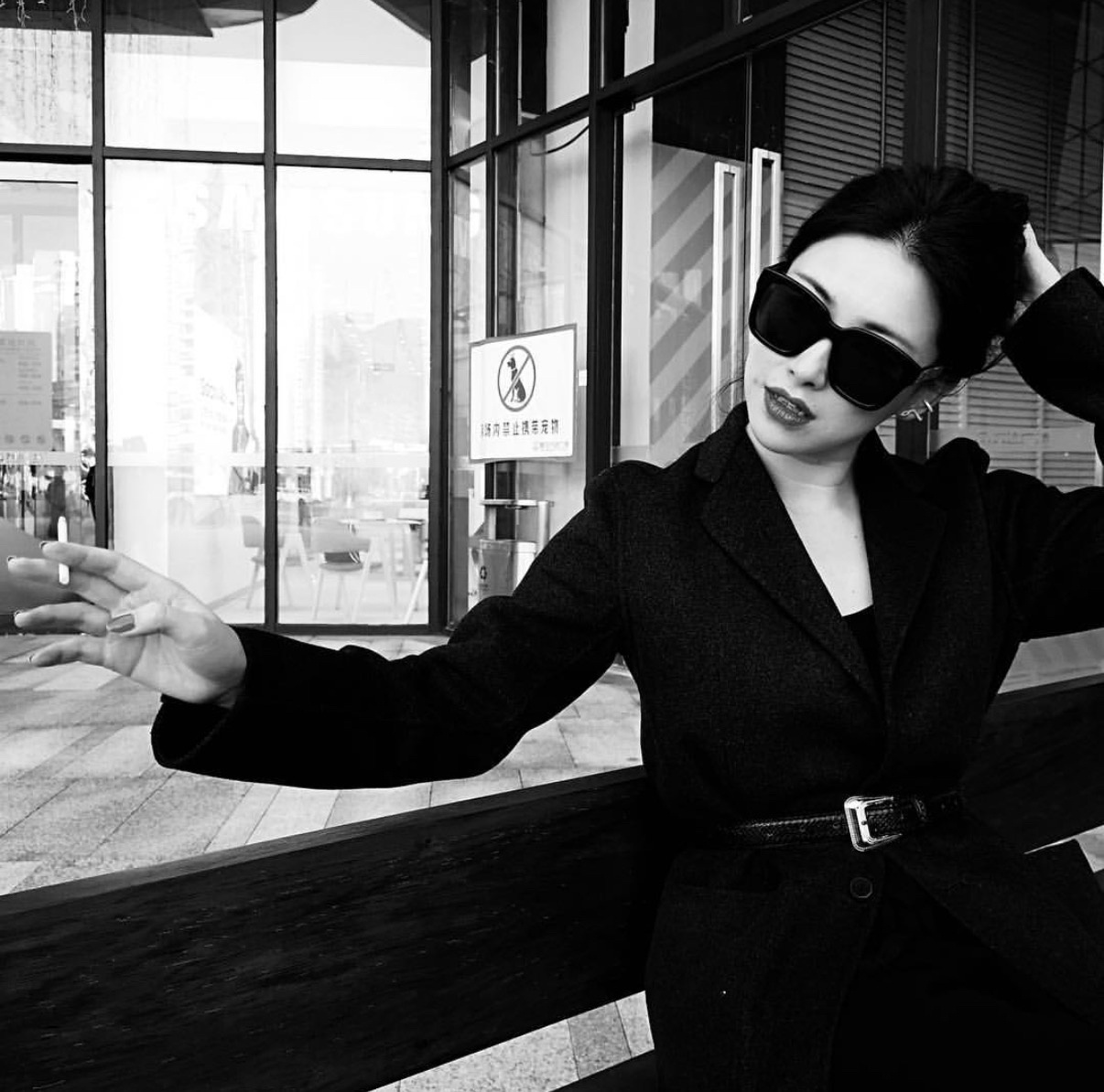 吴艳妮在成都穿着短裤大腿看起来很粗壮,表情自信又张扬