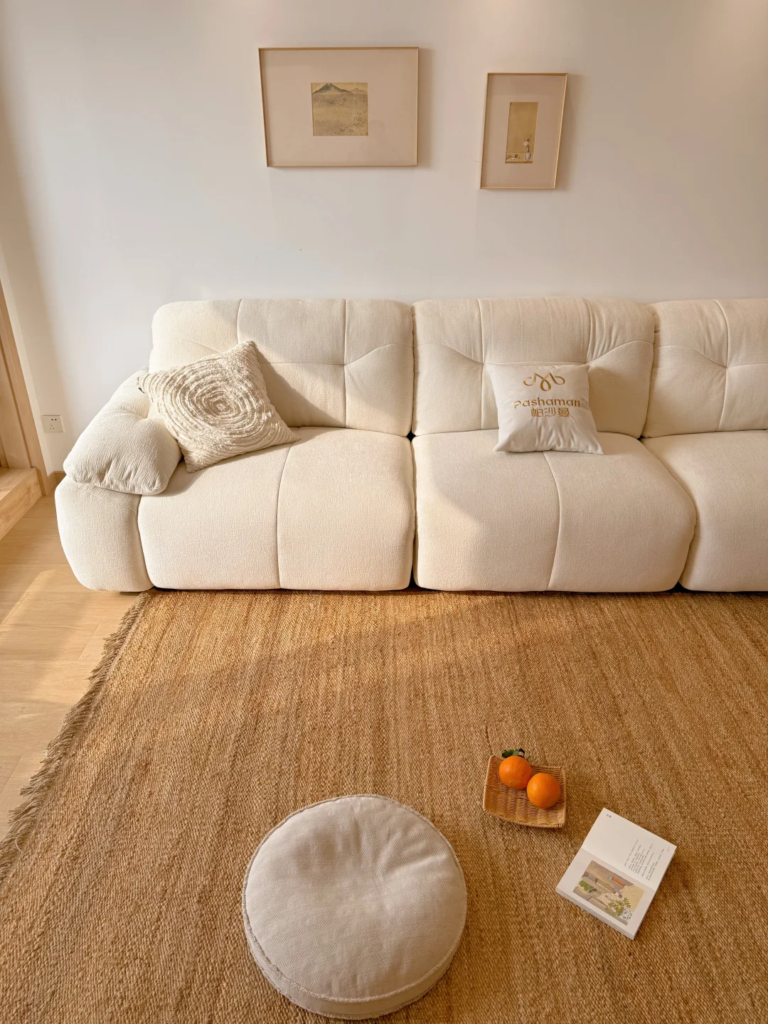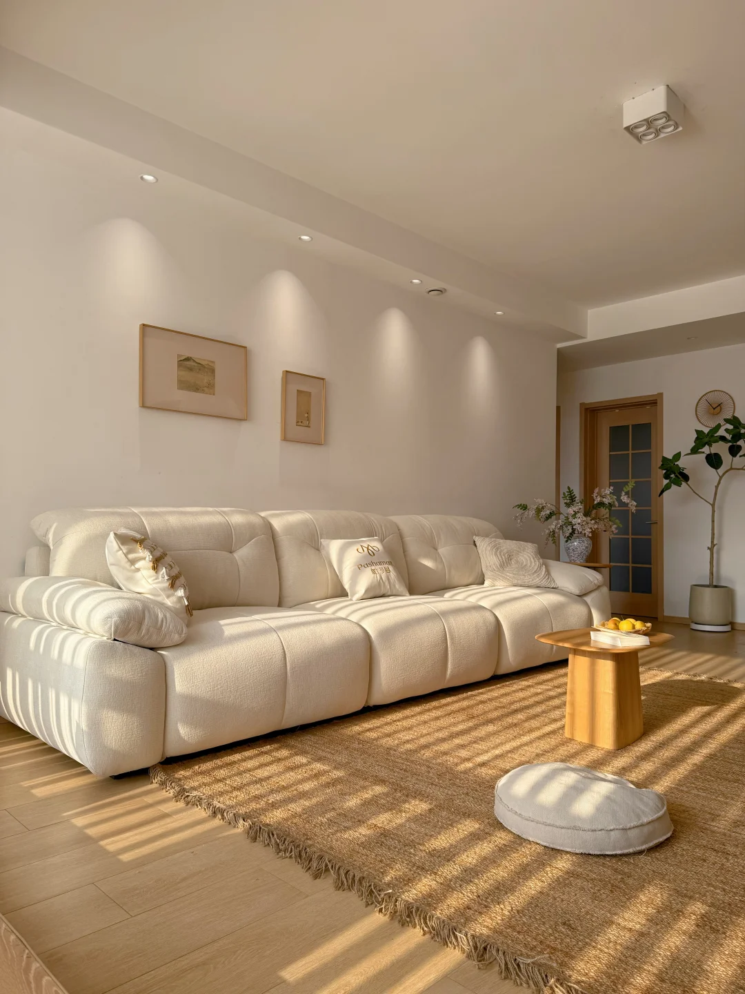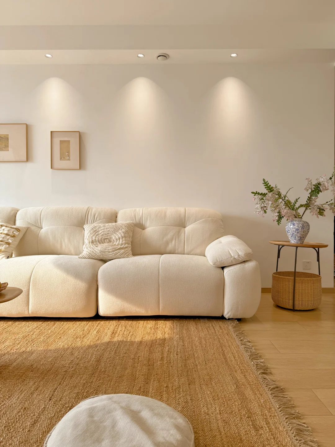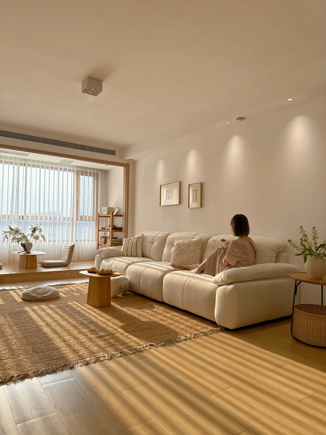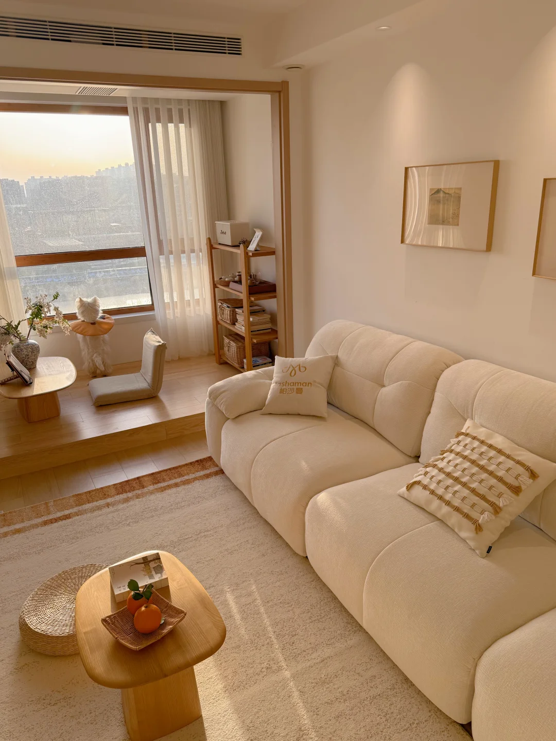 入住了5年,依旧很喜欢的家 原来耐看的尽头是简约 我家全屋通刷大白墙 整体色调看起来白墙都是暖暖的 通铺了可以乱真地板的木纹砖 电视墙用书柜代替,实用又好看 但重头戏还是一张好看又舒服的大沙发 毕竟它不仅需要支撑客厅的颜值 还要坐卧躺都要很舒服~~ 超喜欢我家的帕沙曼抱抱熊沙发 奶白色松松软软的奶呼呼的,看着就想一头栽里[偷笑R] 休息日子让我幸福的时间就是窝在沙发里 追剧吃零食看书睡觉,干瞪眼都很开心 柔和的乳白色搭配我家的原木风很好看 干净清爽,软软的暖暖的 有娃有宠的家,本来很担心白色不耐脏 沙发可拆洗设计也很方便,脏了直接丢进洗衣机就OK 经常腰背酸痛的我选择沙发和选择床垫一样 都喜欢支撑性好但是又不硬的 这张沙发的坐感就是我的梦中情沙发 支撑性好的同时又被柔软的包裹着 65cm的加深坐深,安全感满满 对于我来说,它完全可以作为沙发床了 扶手的坡度和高度也恰到好处 直接作为枕头来小憩非常舒适~ 珍惜每个独处的休息日 躺在大沙发上做什么不做什么都是一种充电方式 充到电量满满来迎接晚上的娃放学后的陪读时光[耶R]