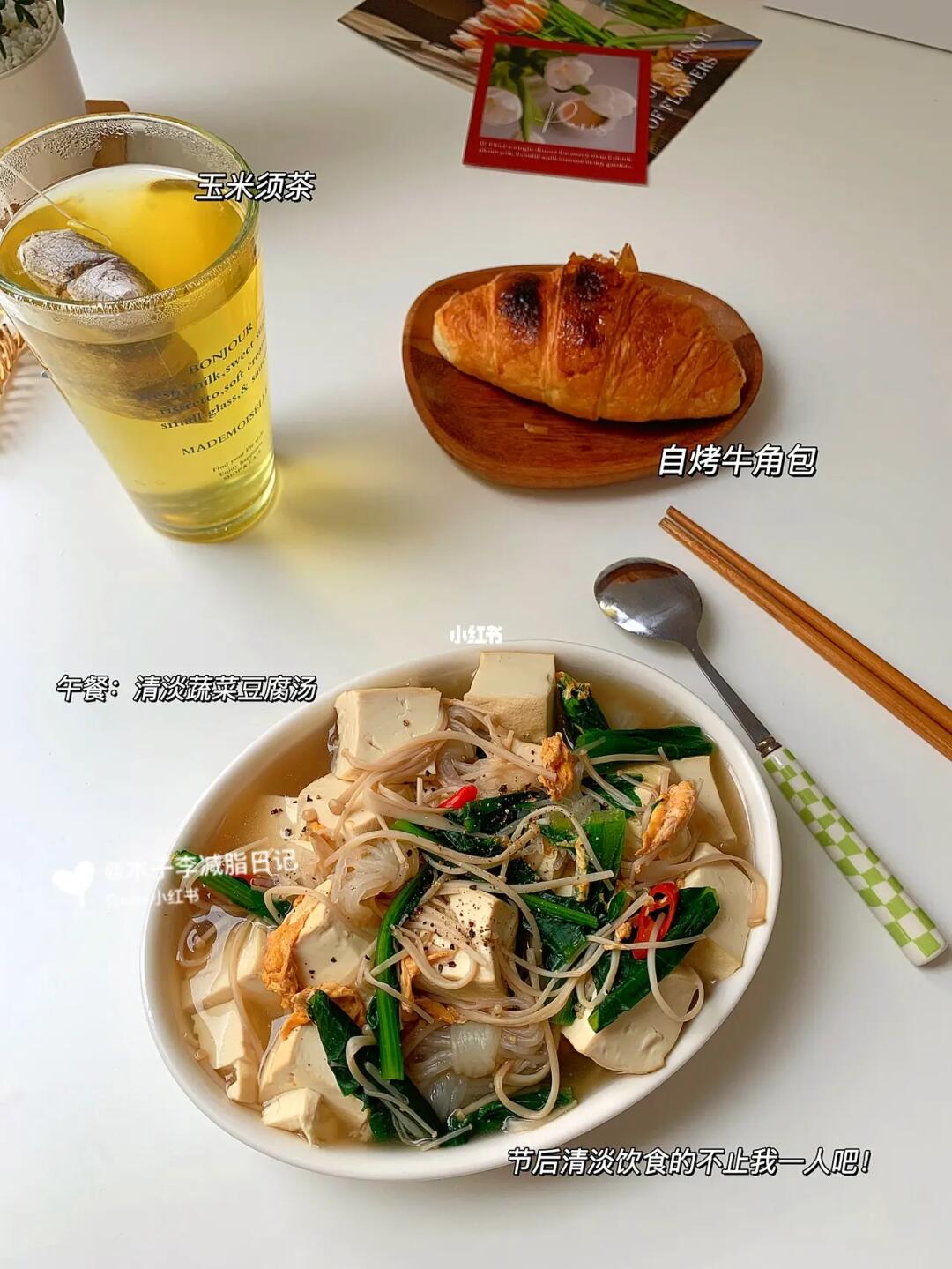 🍽午餐:豆腐蔬菜汤|自烤牛角包|玉米须茶