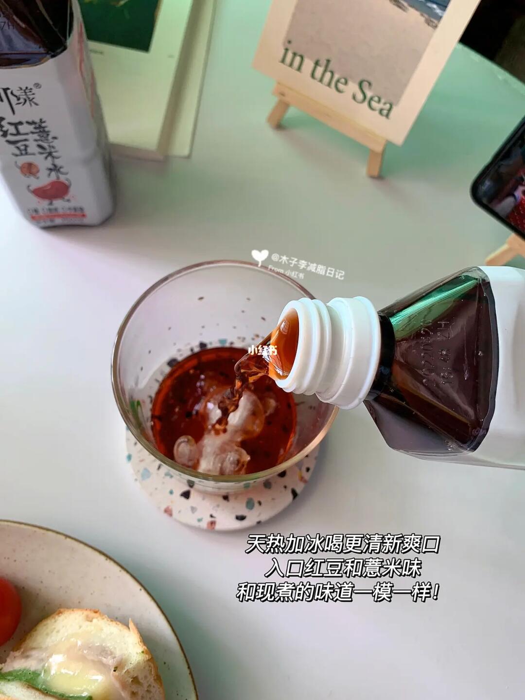 入口浓浓的红豆薏米香味!这天气加冰块喝特爽口,我每天都得喝一瓶~这健康又养生的饮品我可太爱啦!