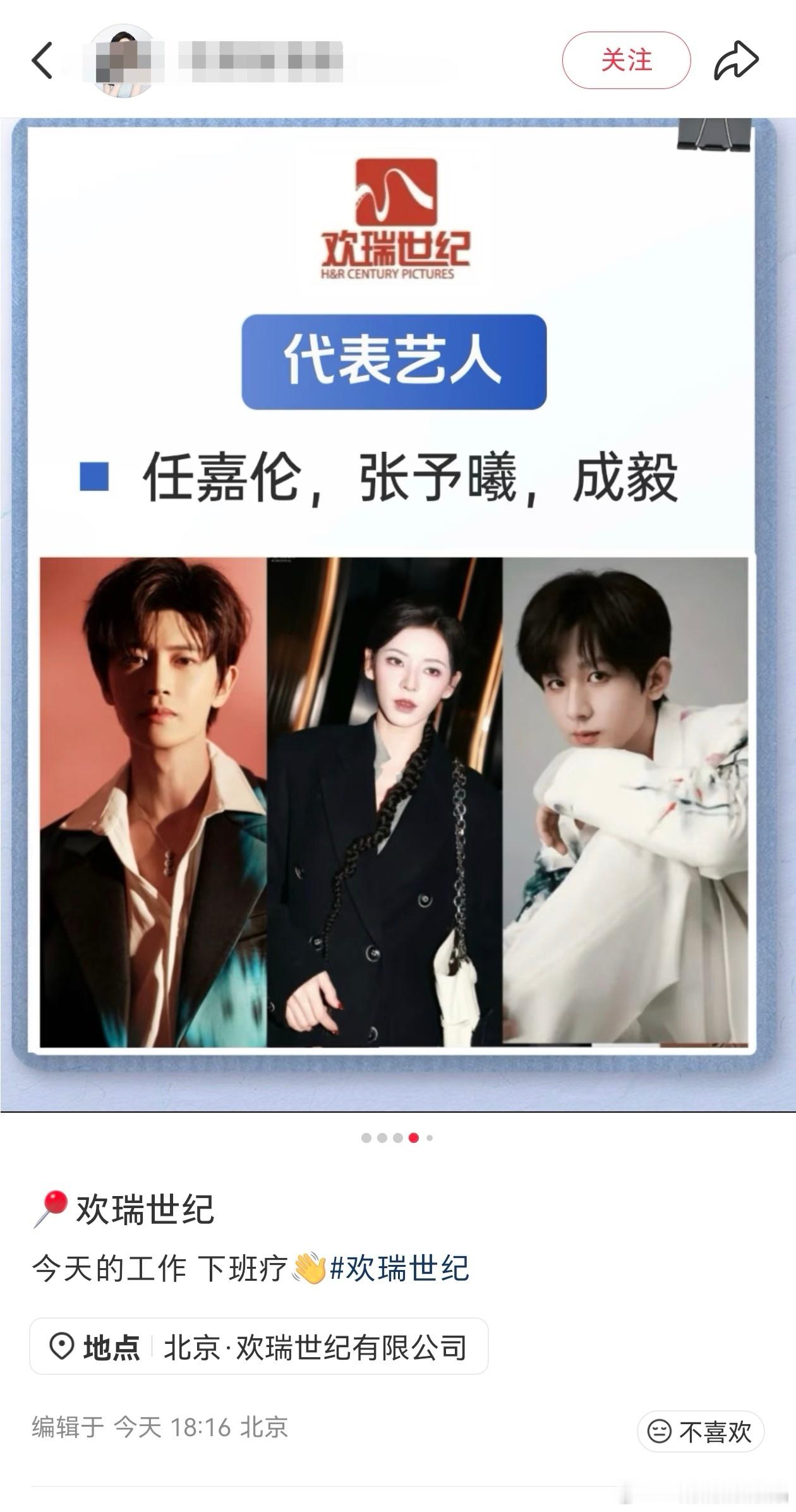 欢瑞世纪北京总部还挂着离职员工任嘉伦的照片不肯撤下呢 任嘉伦离了老公司全是新赛道