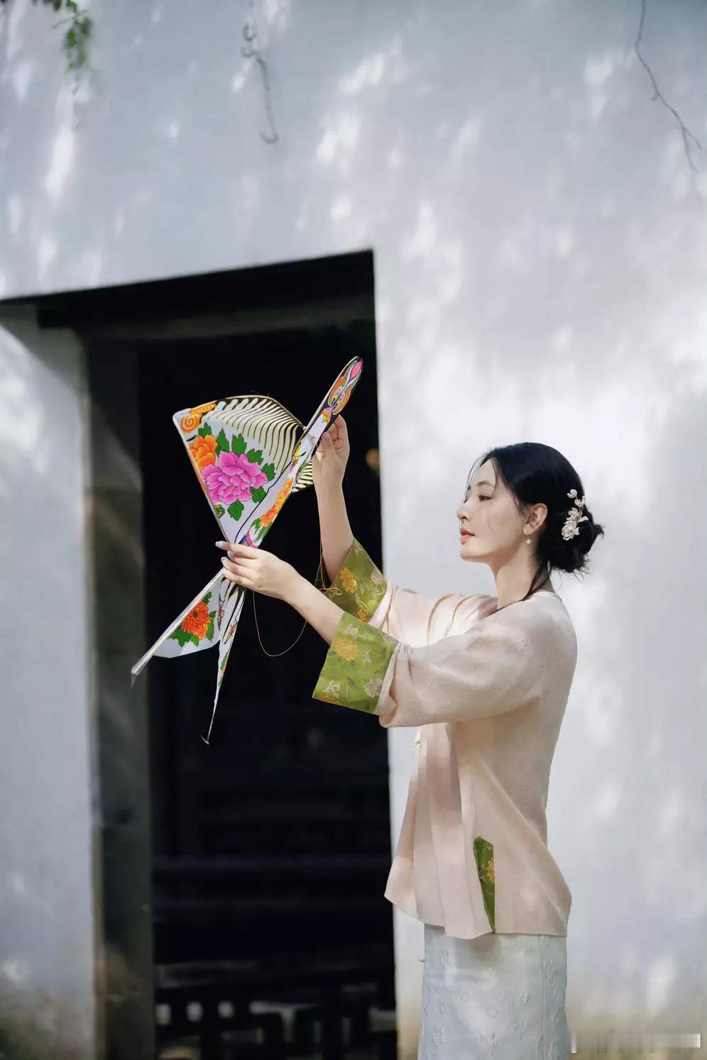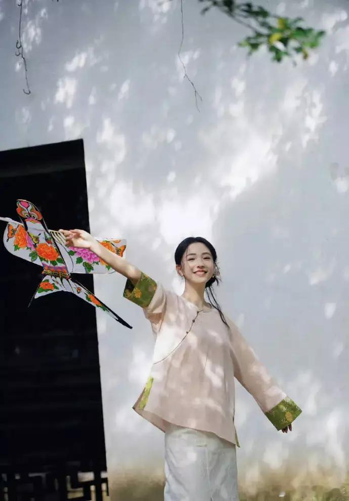 青青娱乐吴倩身穿新中式温柔又大方 手拿风筝笑容灿烂