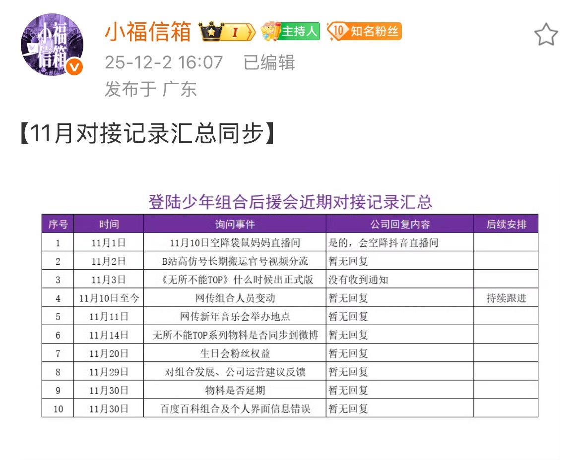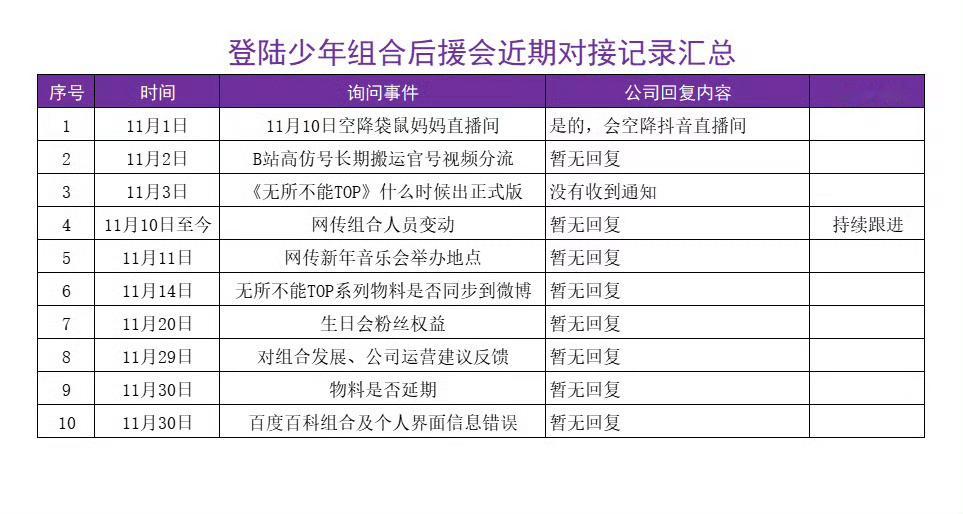 登陆少年后援会11月对接记录 登陆少年后援会发布11月对接记录…好心酸的感觉