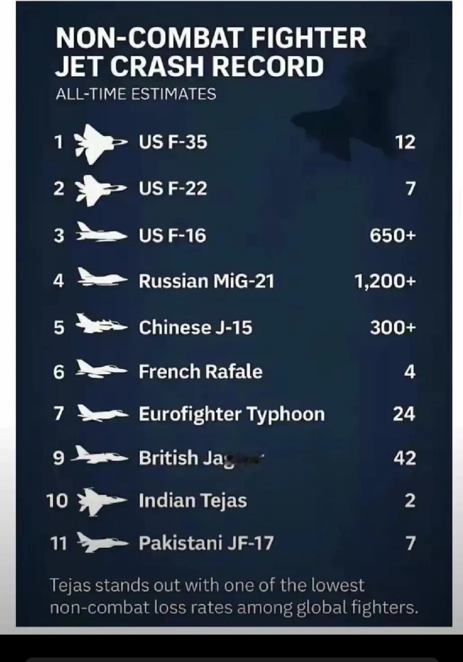 印度航展坠机后“赢麻了”?离谱数据笑掉大牙 印度“光辉”战机在迪拜航展坠机,飞行员不幸遇难,这事儿本就够尴尬,印度网友的操作更逗。 为了挽尊,他们竟P图抹黑他国战机,给歼-15标注300架坠毁量,数据离谱到没边——要知道歼-15总数都远不及这个数。与其花心思黑别人,不如好好正视自家“光辉”装备少、事故多、研发滞后的问题,这波自欺欺人实在让人笑掉大牙!