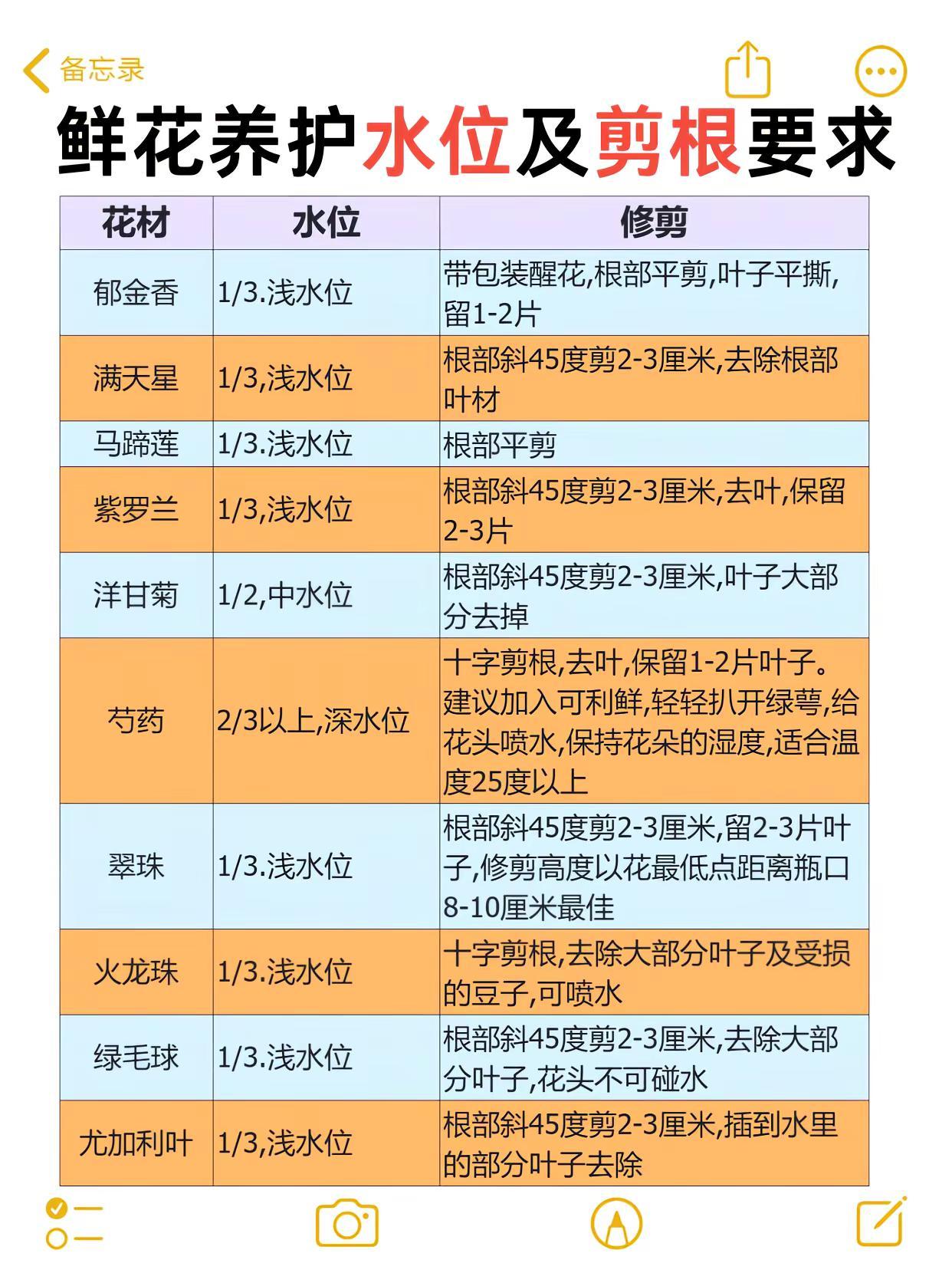 零基础学花艺必看|常见鲜花养护水位及剪根。