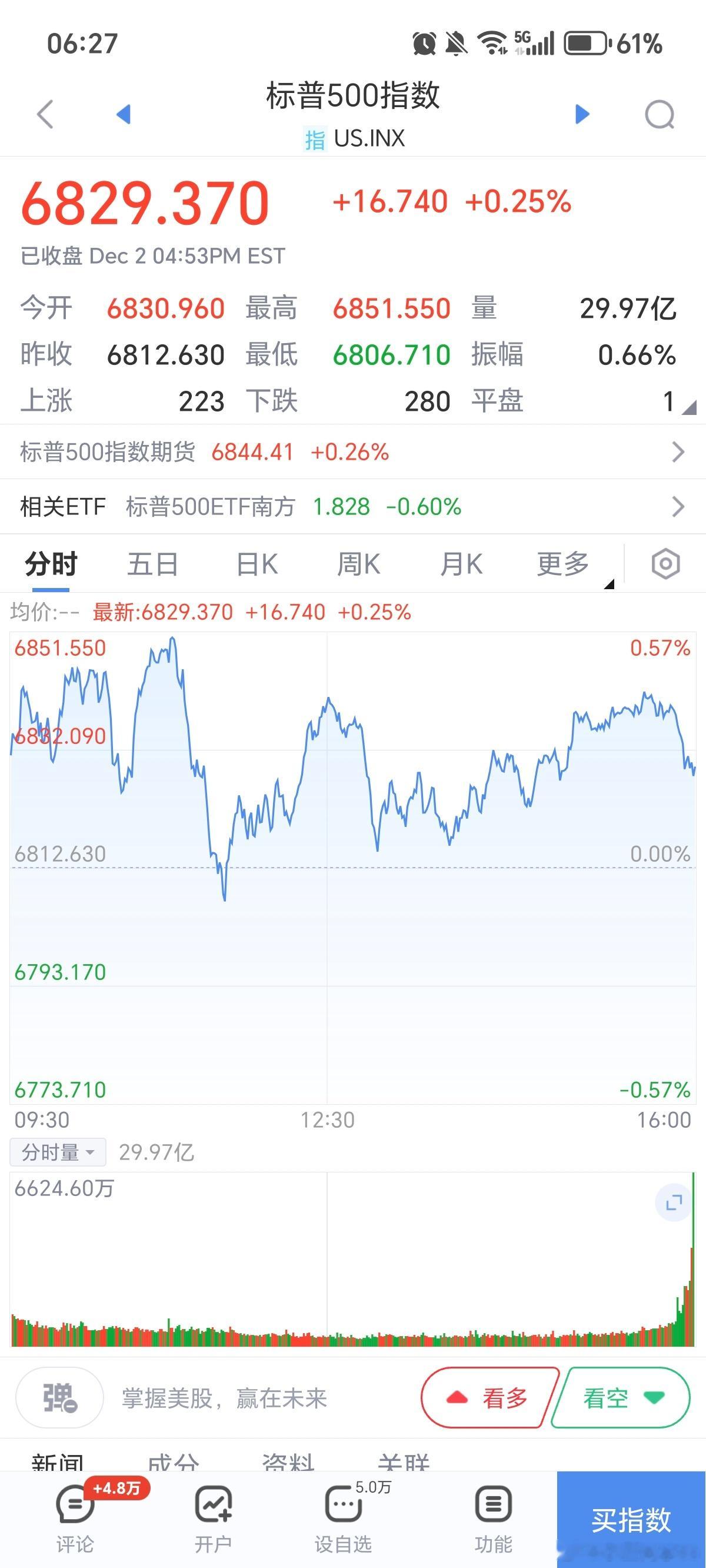 基金早上好,家人们起床啦,有空点赞互动,就当养铁粉/金粉/钻粉。美股又涨了,黄金微跌,A股期货小绿,今天大盘低开或者平开标普500:+0.25纳指100: +0.84生物科技:-0.67油气:-1.5原油:-1.18
