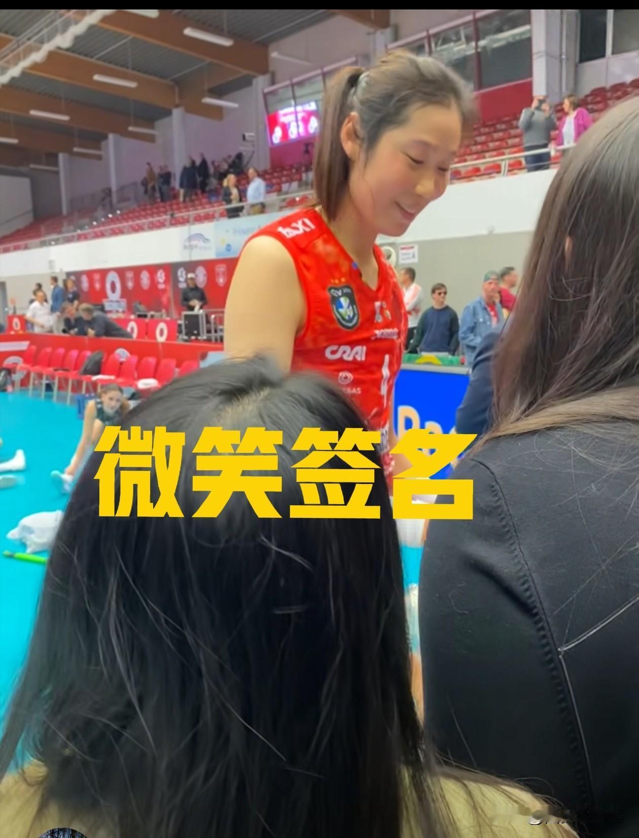 朱婷的性格就是好啊[赞] 赛后,她主动靠近粉丝群,先是面带微笑,专注地签名,随后又亲切地陪粉丝们合影。朱婷虽贵为国际巨星,但总给人一种平易近人的感觉。这就是朱婷的性格魅力,她的一举一动,总能赢得粉丝的喜爱。朱婷