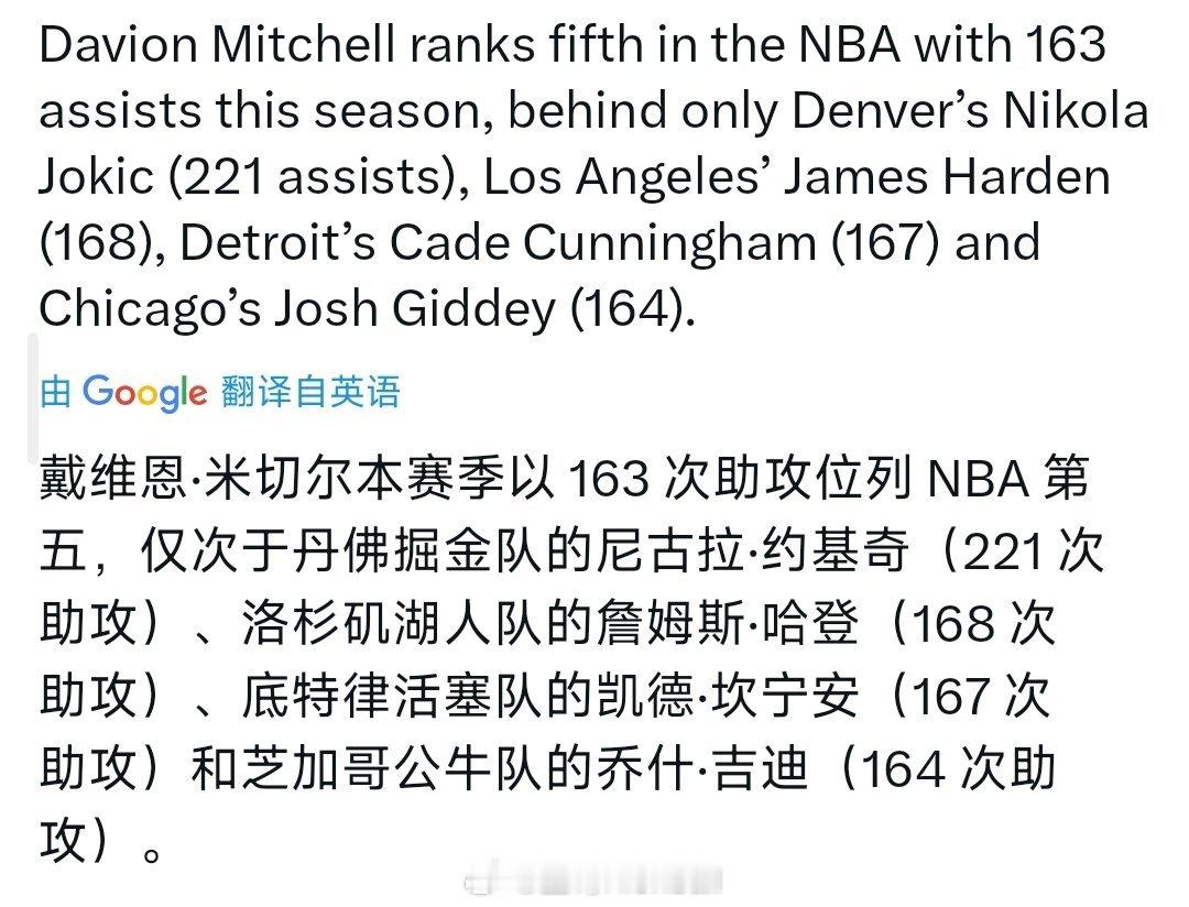 小米切尔这赛季真让我意想不到,传球属性完全被释放出来了,奔着助攻王去了