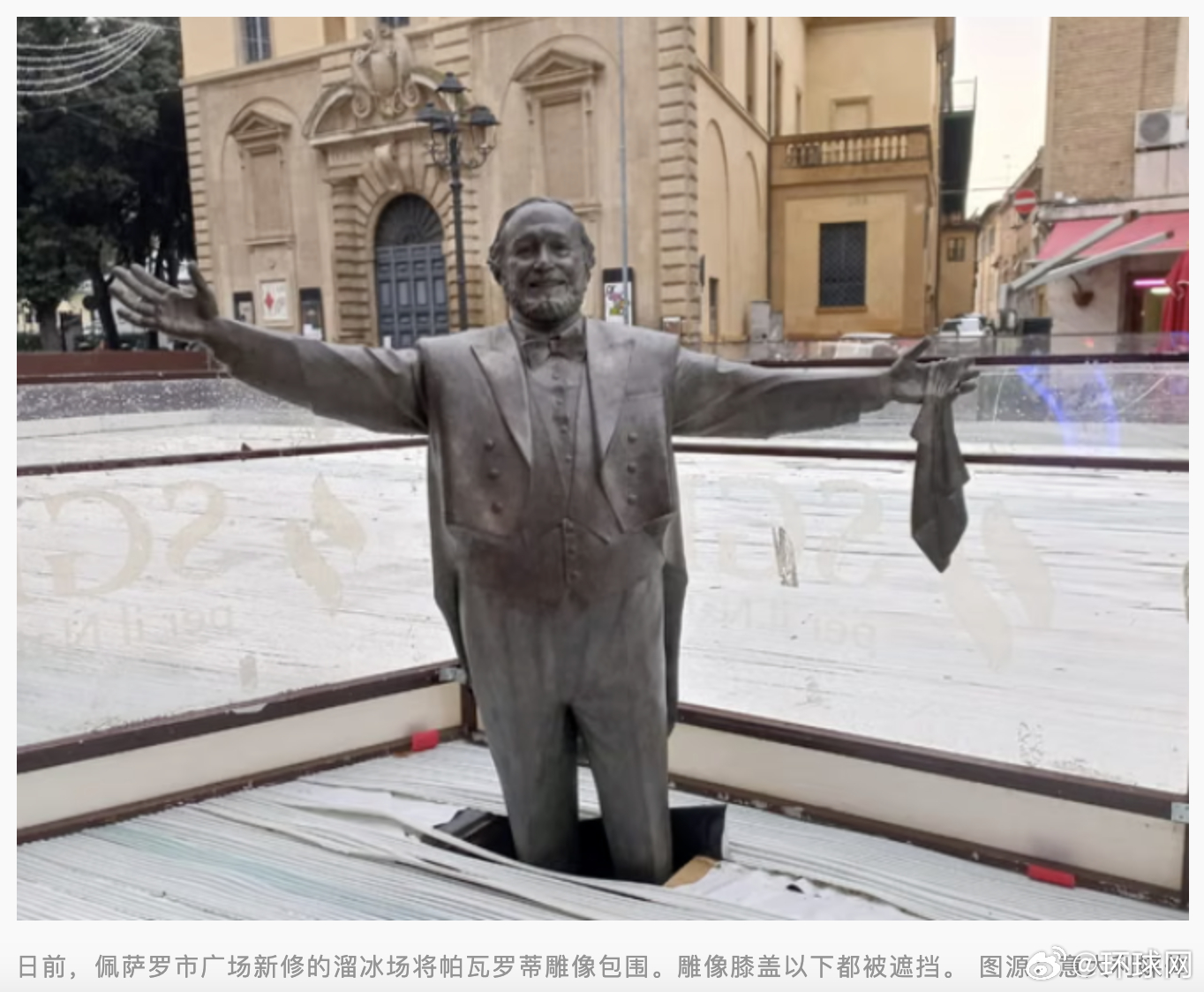 #意大利著名歌唱家雕像被困溜冰场#【帕瓦罗蒂雕像“被困”溜冰场,意大利一市市长致