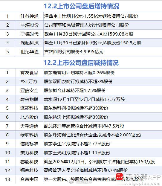 【12月2日增减持汇总】a股
