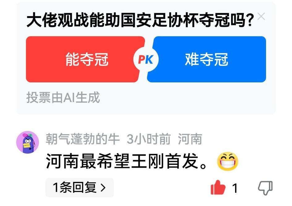 “河南最希望王刚首发”!足协杯决赛在即,未想到挺王刚的却是河南球迷。 这调侃之言,实际上直击国安队情绪控制力。纵观整个赛季,国安的配置超豪华,国脚都常坐替补席,但打疯时可赢7:0和6:1,低谷时也能4:0领先被翻盘、0:6为对手“回礼”。特别是两次在亚冠赛场大打出手,说明国安打情绪球不用争就排第一。 35岁的王刚有丰富的阅历,不仅该自控,而且应帮助兄弟们调节情绪,但他今年对对手和球迷都有冲动,颇惹争议。希国安对王刚和球员提前做个心理保健,把心态调节到最佳比赛状态,为广大球迷奉献一场精彩的比赛。