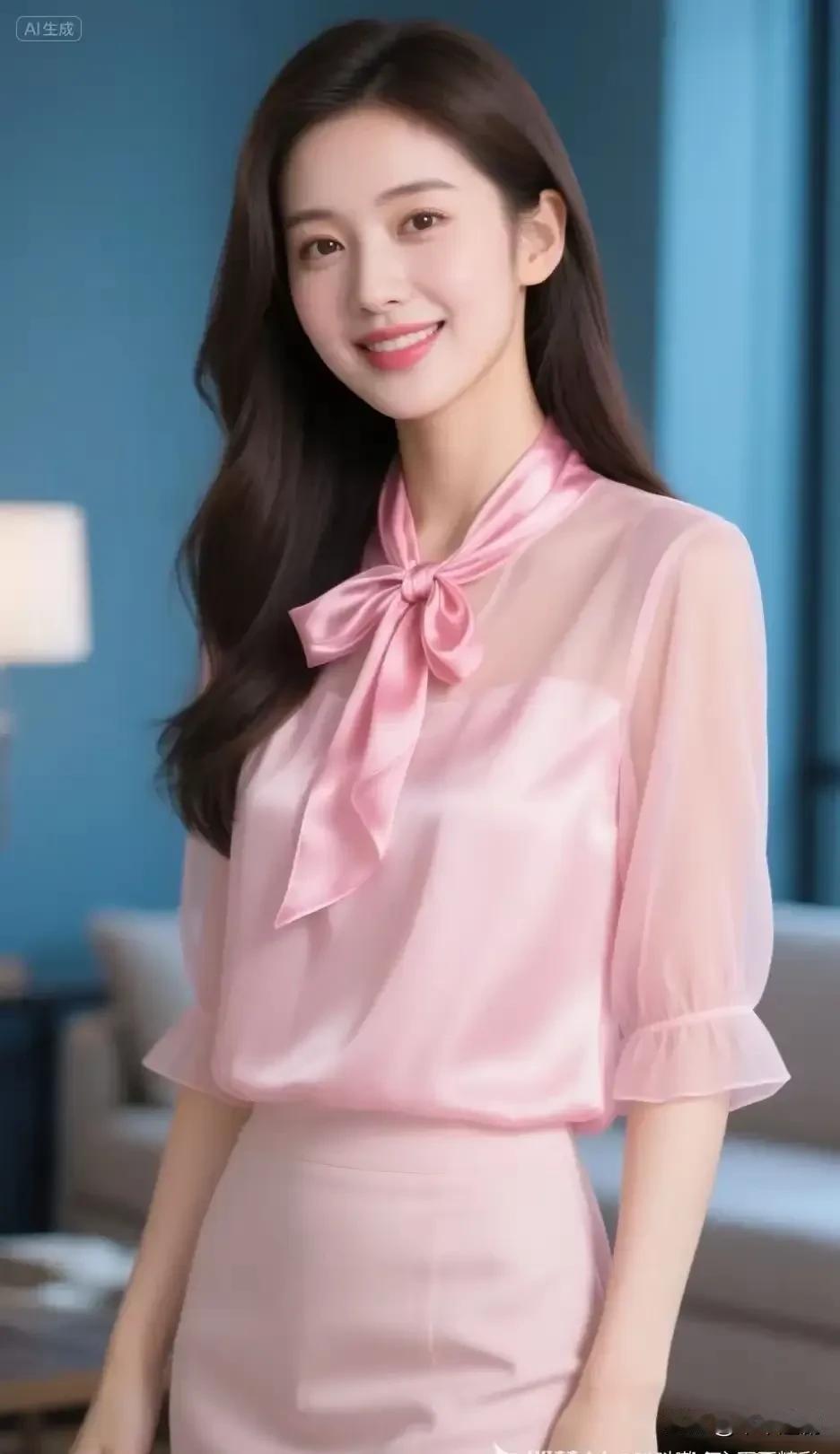 粉衫裹着柔缎的甜,领结缠出轻俏的韵,浅蓝底色衬着她的笑,是春日浸透的软。 玫粉色衬衣裙 少女粉衬衫