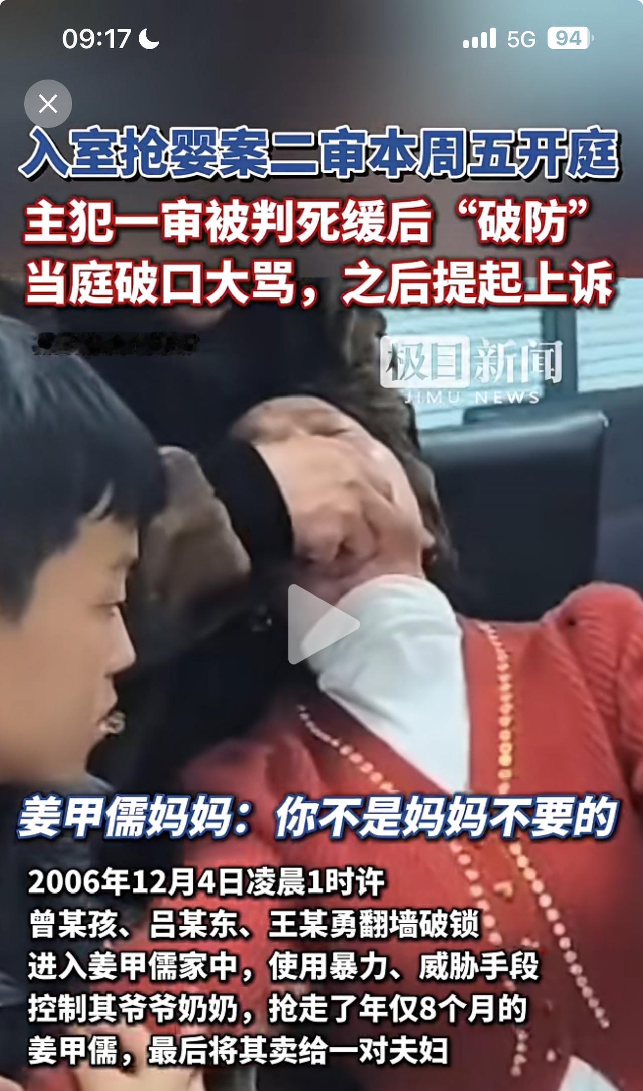 入室抢劫钱财,你可能听说过!但是入室抢婴儿这种伤天害理的事情你听说过吗? 极目新闻报道,发生在19年前即2006年的山东入室抢婴案,二审即将于本周五开庭。 19年前,曾某孩等三人,通过暴力手段入室抢婴,手段残忍,影响恶劣,给原生家庭造成了巨大损失和心理伤害,可以说罪大恶极。 在一审,主犯被判“死缓”!你们看一审庭审图片中他的愤怒表情,很显然他非常不服! 这三祸害对一审还不服气?是的!尤其是主犯觉得自己够不上死缓。 我也觉得不服,判死缓太便宜他了!就他的手段、行为和影响,三人都应该判死刑,希望二审法院可以依法裁决,至少主犯死刑,请他人死缓,把主犯送上路,把从犯关到死! 拐卖孩子已经罪大恶极了,入室抢婴➕拐卖孩子罪不容诛!你们认为呢?