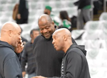 NBA常规赛,凯尔特人主场迎战尼克斯的比赛即将打响。 赛前,凯尔特人助理教练萨姆-卡塞尔与帕特里克-尤因进行了会面,两人谈笑寒暄了许久。 萨姆-卡塞尔生涯场均登场30.0分钟,可以得到15.7分3.2篮板6.0助攻1.1抢断。 帕特里克-尤因生涯场均出战34.3分钟,可以得到21.0分9.8篮板1.9助攻2.4封盖。