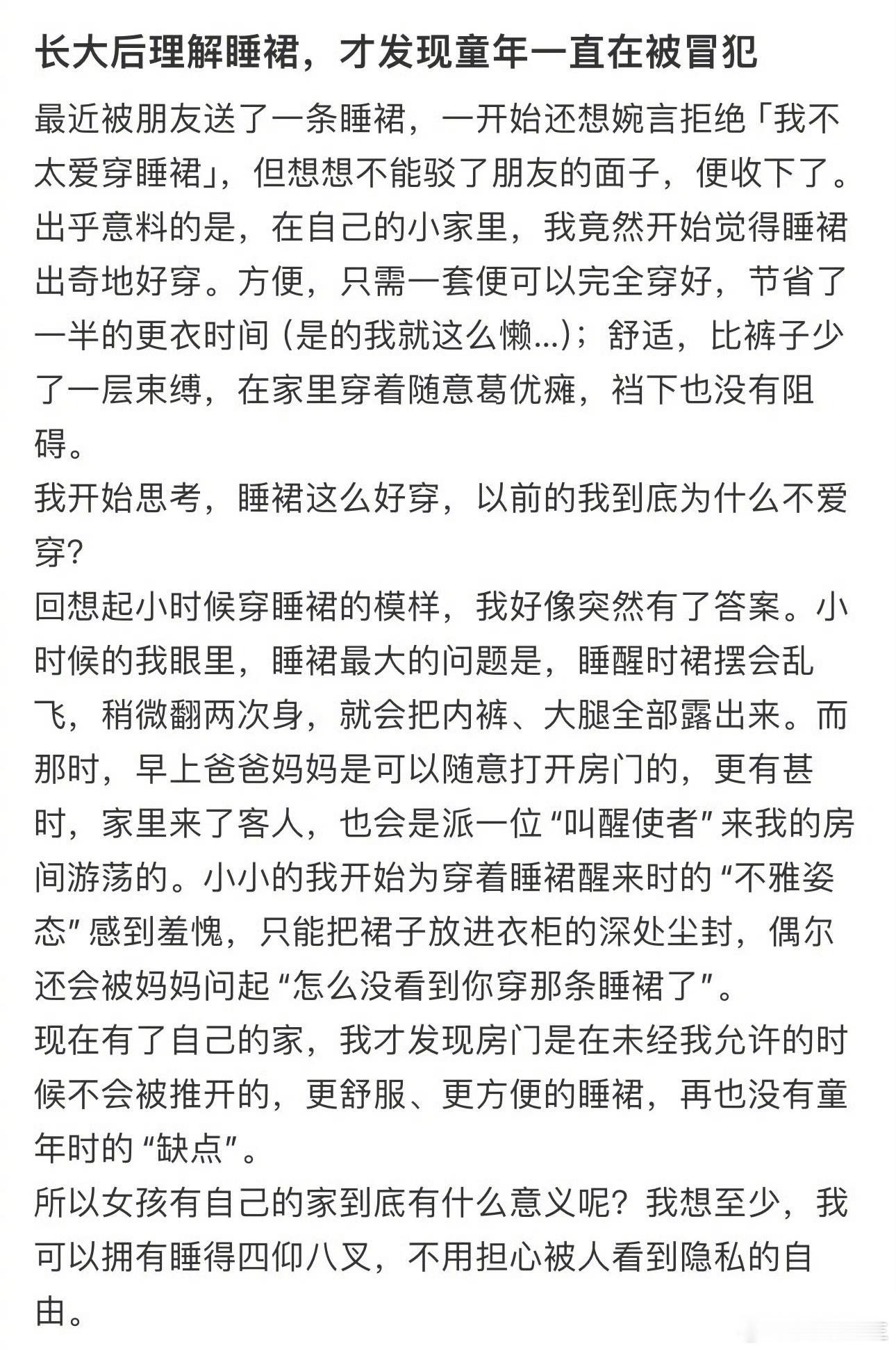 “直到长大后开始理解睡裙,才发现童年的自己一直在被冒犯。”这就是女性为什么需要自己的房间