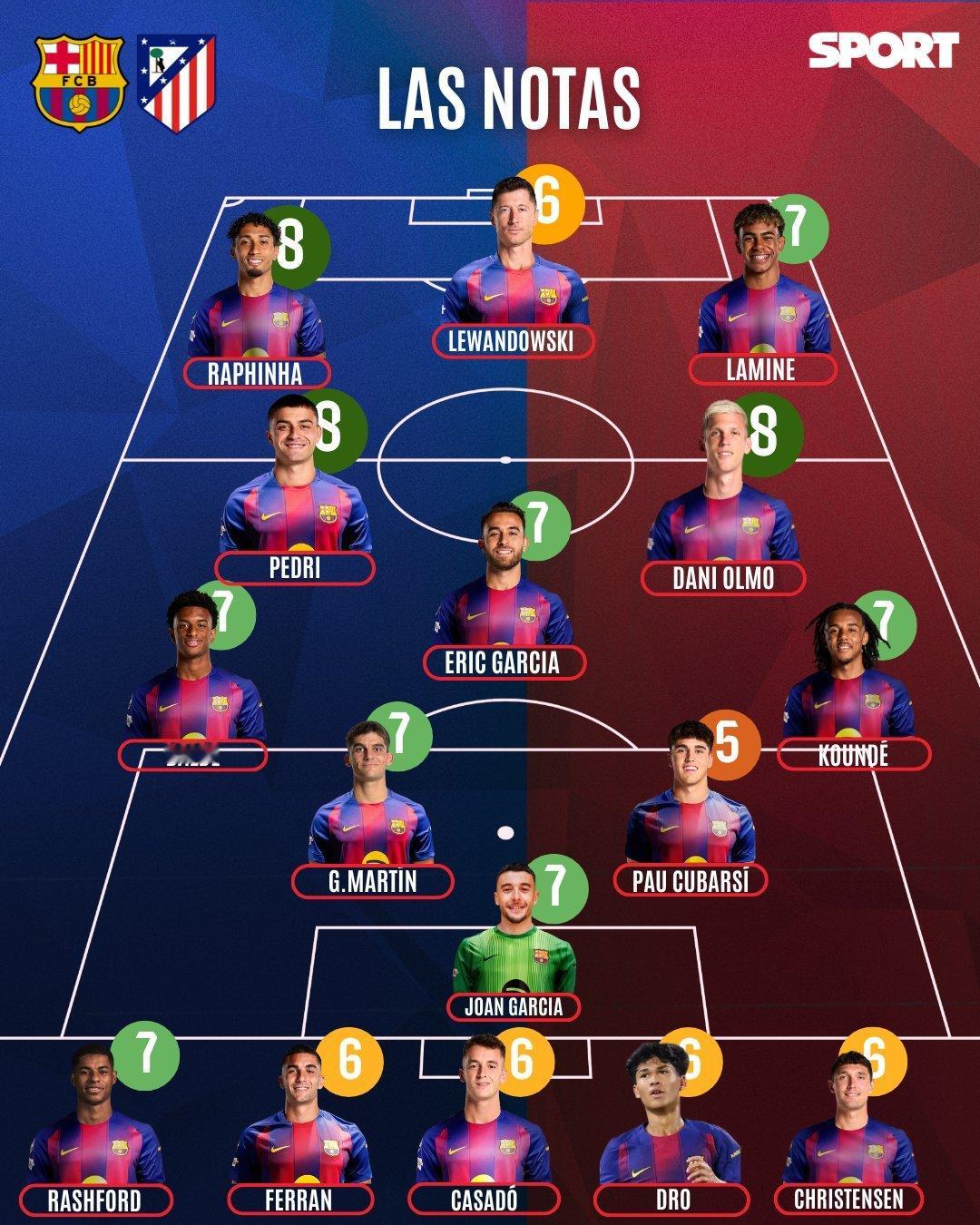 每体对本场比赛球员评分。巴萨3比1马竞热点现场巴萨vs马竞