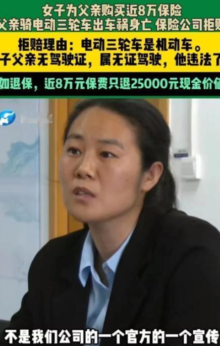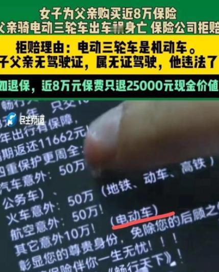 河南郑州,女子为父亲购买近 8 万元的保险,但父亲车祸身亡,保险公司不仅拒绝赔偿, 8 万保费还只退 25000元的现金价值!保险公司:“不服就去法院起诉!”女子:难道来你们这儿买完保险就去法院理赔吗?我们直接去法院买不就行了? 栗女士站在昏暗的办公室里,手机还握在手中,心里像被重锤砸了一下——九年来为父亲缴纳的近八万元保险费,眼下竟只换来一句“无证驾驶,不在理赔范围”。 她回想起,这份保险是她2016年春天为父亲买的。父亲河南郑州一个偏远乡村人,本在县城打零工,后来干起农活兼开了一辆电动三轮车,帮乡邻拉货、赶集。 每天起早摸黑、风里来雨里去,三轮车是他谋生的“第二双手”。为了给父亲留一份保障,她请邻居陪她到县城保险公司签合同:“保费低,保障全,你爸要是出了事,保险公司负责赔偿。” 一纸合同签下后,保险公司的那句“危险驾驶、电动三轮车须持驾驶证”却从未在当初任何材料里注明。 合同条文、保险单、宣传海报、合同说明书……每一处都写着“机动车”,但没有“电动三轮车须持驾驶证”的注释。 签单那天的客户经理神色温和,也没有提醒父亲需要驾照。父亲根本没去考——农村哪里有考证渠道? 事故发生在一个秋夜。父亲载着一担新收的玉米,推着车准备过乡间小路。天色昏暗,一辆轿车从支路转出,司机没注意,三轮车被直接撞上。 那一刹那,父亲被甩出车外,头部重创,送到医院,几个小时后宣告不治。父亲留下的钱不多,但那担玉米、那辆三轮车,还有这个家赖以维持的生计,统统成了空空。 栗女士伤心欲绝,也害怕医疗费、丧葬费压垮整个家庭,当即想到去向保险公司寻求理赔。 她把事故报告、死亡证明、交警现场认定,都一一递交。 那天,她站在柜台前,声音哭腔,声音低哽:“我爸他是骑车没拿证,可他一直安稳地干活,从来没撞过车,这保险不就是为了让我们有个保障吗?” 可保险公司客服只是冷冷一句:“很抱歉,你父亲属于危险驾驶:无证驾驶电动三轮车,不在理赔范围。”语气平淡,像在念一条条款。 她愣住了。偏远农村,这电动三轮车哪来的证?买保险的时候,合同里更没说过要驾证。 她反复翻看合同条文、保险单背页、宣讲资料,每一页都是“机动车辆保险”、“第三者责任险”、“车损险”“身故赔付”,却没有一句提示“必须持有机动车驾驶证”。 更没有人当面说,“你爸这车如果算机动车,没证就赔不了”。 她质问客服:“那买保险的时候,你们为什么不说清楚?如果当时知道,我绝不会买!” 客服依旧平静:“我们的保险条款已有明确说明。电动三轮车按新规定属于机动车范畴,需要机动车驾驶证。你父亲无证驾驶,风险增大,不符合理赔条件。” 不仅如此,他们在赔付计算中,将九年来累计缴纳的八万元根据现金价值法折算,只同意退还约两万五千元——也就是所谓“现金价值”,远远低于她预想的赔偿金额。 其他的钱,就这样“吞”了。 栗女士气得头发都竖起来。她咬牙:“你们是保险公司,不是慈善机构,我当初签合同、按月交钱,就是图有一天出了事能保住我们这个家!” 她难以理解——自己缴费这么久,凭什么因为一张驾照,就这么被否认赔偿? 她给邻居、亲戚、朋友讲,大家都说:“这保险不过是把钱存在你爸名下,出了事再看条款,太险了。” 可她记得,那天签合同时,谁也没提醒她看“机动车范畴”“驾驶证要求”这些条款。她只记得当时心里想着:“万一哪天有个意外,保险能帮我们顶一顶。” 愤怒和无奈让她决定:把这件事公开。她拿着合同、事故材料、交费记录找记者,说:“万一有人跟我们一样,交了钱,到头来连赔偿都拿不到,该怎么办?” 她没想到,保险公司竟然连道歉都没有,只说:“不服就去法院起诉。” 她说:“你们保险公司要是想免责,就早说清楚;你们要是想做生意,就做透明合同。别等我们出了事,再用‘条款’压死人。” 她已经下定决心——如果保险公司不承担责任,她将拿起法律武器,走法院,用法律给父亲一个说法,也给自己一个尊严。