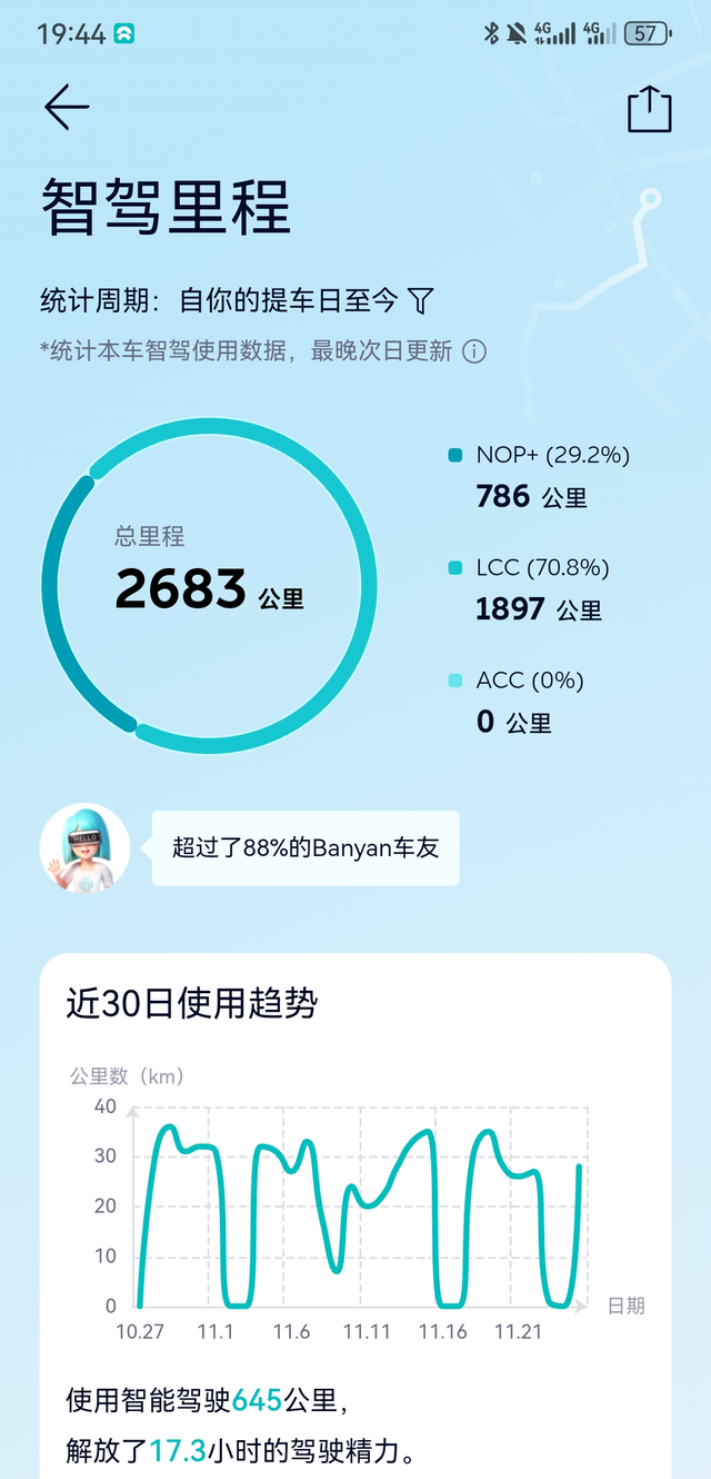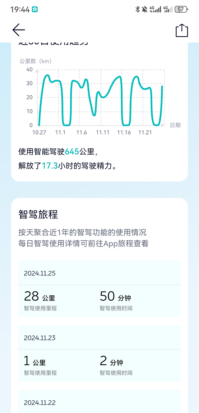 城区智驾有待提高哇 我经历了两个版本,无论是2.6.5还是3.0版本的城区智驾都可以说比较拉胯:掉头,进出收费站等复杂路段需要人工接管,车道线不清晰路段出现过一次画龙,进出匝道或者变道犹豫,遇到有车跨线或者车稍微靠近,就会踩刹车减速,体感较差,整体用下来都是偏保守策略,说白了安全为主,但是也不能一味的慢,一味的让,还是要根据实际情况做调整才能做到真正的安全。 那城区智驾我基本就很少用了,平时都是高速路或者堵车跟车直接用Pilot,这个就无敌好用,上了高速直接无脑开,车速和车距自己根据实际方向盘左边按钮随时调整,每天基本高速大多时间都开启,上下匝道就自己开。 自动泊车也是每天必用,除了一次过路人较多短时间没识别到我车位以外,其他每一次都是秒识别,和对面车位比较近,但是每次也就几盘子就停进去了,停的既规矩也标准,好评。