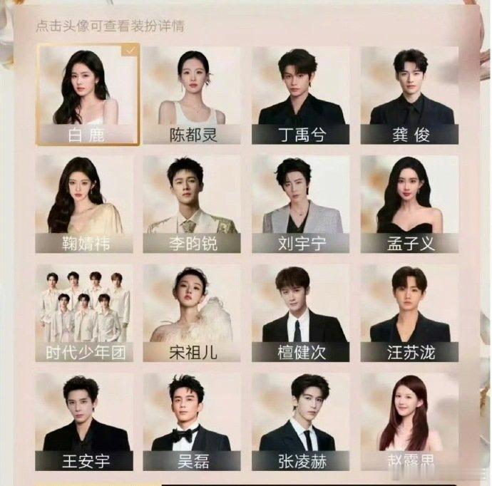 星光大赏公式照今年星光大赏的主力军,是这一批95年左右的女演员了。据可靠消息,赵露思将携《许我耀眼》压轴红毯+拿最大奖。另外还有一个大看点,就是在大合照环节时,赵露思、白鹿、鞠婧祎、孟子义、陈都灵、宋祖儿这几个当红花的站位如何了,这种热闹也是从大花85花时代留下来的传统话题了。 星光大赏阵容