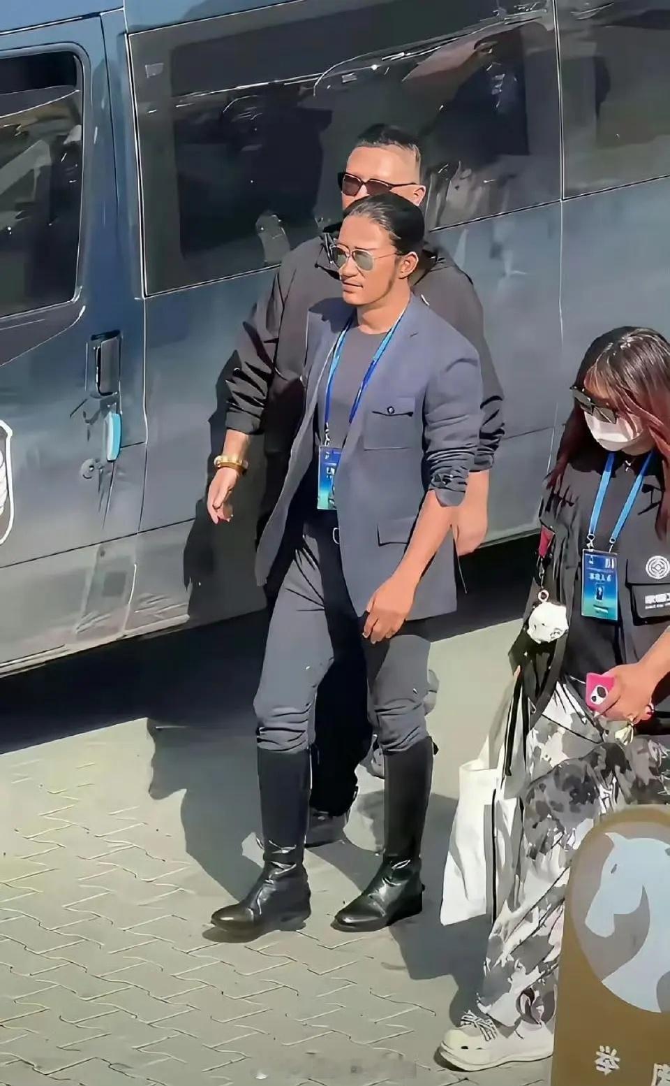 网友偶遇吴京,吴京现状皮肤黝黑,留了长头发扎了丸子头,还很有反差感~
