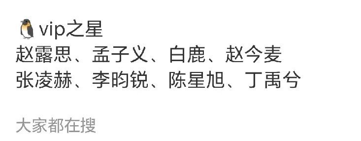 腾讯要办星光大赏啦!网传嘉宾超多,可仔细瞅瞅,大多是95和00后的生花,85花和90生花目前还没见着。还有瓜主说今年VIP之星有八人,分别是赵露思、孟子义、白鹿、赵今麦,张凌赫、李昀锐、陈星旭、丁禹兮。要说VIP之星阵容最强的还得是20年,有杨幂、赵丽颖、杨紫、迪丽热巴,肖战、杨洋、王一博和吴某凡。从这名单能看出,85花和90生花都在转型,往实力演员方向努力,慢慢不拼流量了。新的95、00生花看着热闹,CP一堆堆,但观众基础和扛剧能力比前辈差远了。今年网传的VIP之星里,我觉得赵露思和白鹿综合实力最强,播剧下限高,未来发展看好。其他人还得再看看,起码得做到播其他类型剧也能扛招商、有观众基础,不能一部火一部扑。不过95、00生花都在崛起,接下来一两年很关键,看谁能成领头羊