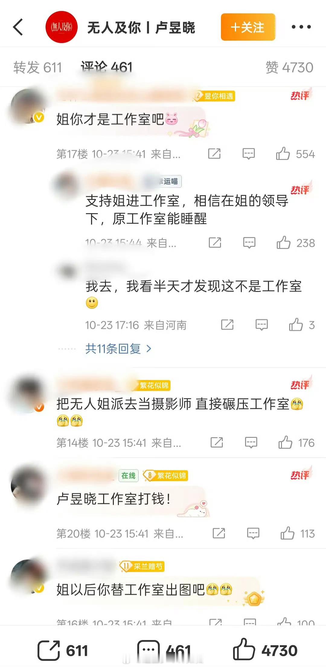 卢昱晓的站姐无人及你确实很多照片和工作室距离视角一模一样,要不是加了水印,还以为是工作室的图…所以这次翻车是因为被其他站姐看到团队区别对待?或者有没有可能无人及你就是工作室编外人员呢