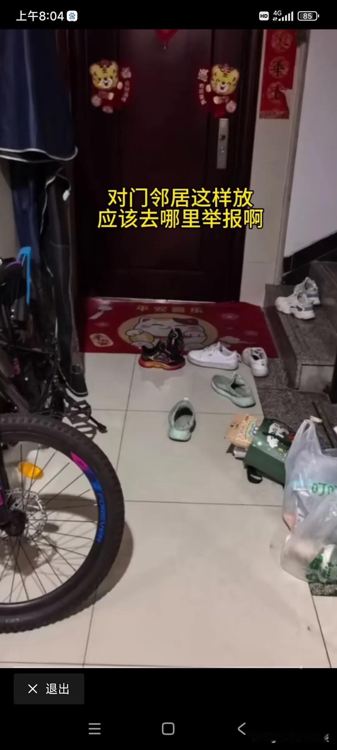面对这样的邻居真是很无奈,又很无语。每次回家一眼就能看到邻居门口乱七八糟的,鞋子乱堆乱放,还有自行车,简直没法看。鞋子散发着脚臭味儿,每次好意提醒他们,还被他们给怼了回来。 和物业反映,物业也说说过他们再改,后边慢慢的又会变成些乱七八糟的。 要不是孩子上学,真想马上离开这里,把房子卖掉,一天都不想和这样的人做邻居。