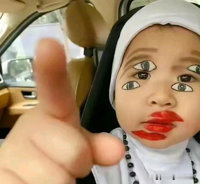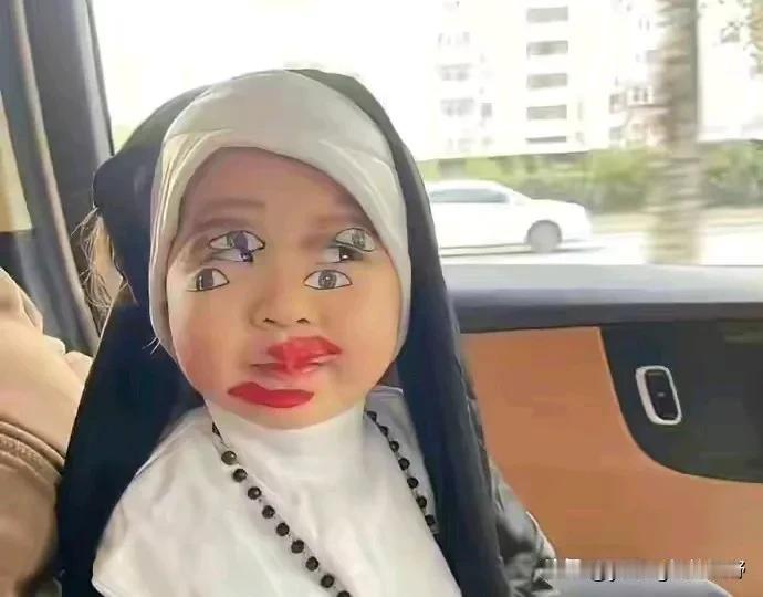 这张图片在网络上已经火了很久了,一位妈妈凭借着自己的神化妆手法,给自己的孩子化了一个让所有人看着都眼花的妆容。去掉化妆效果,孩子本身还是很可爱的哈。再看回化妆的效果,真的太晕了。[捂脸][捂脸]