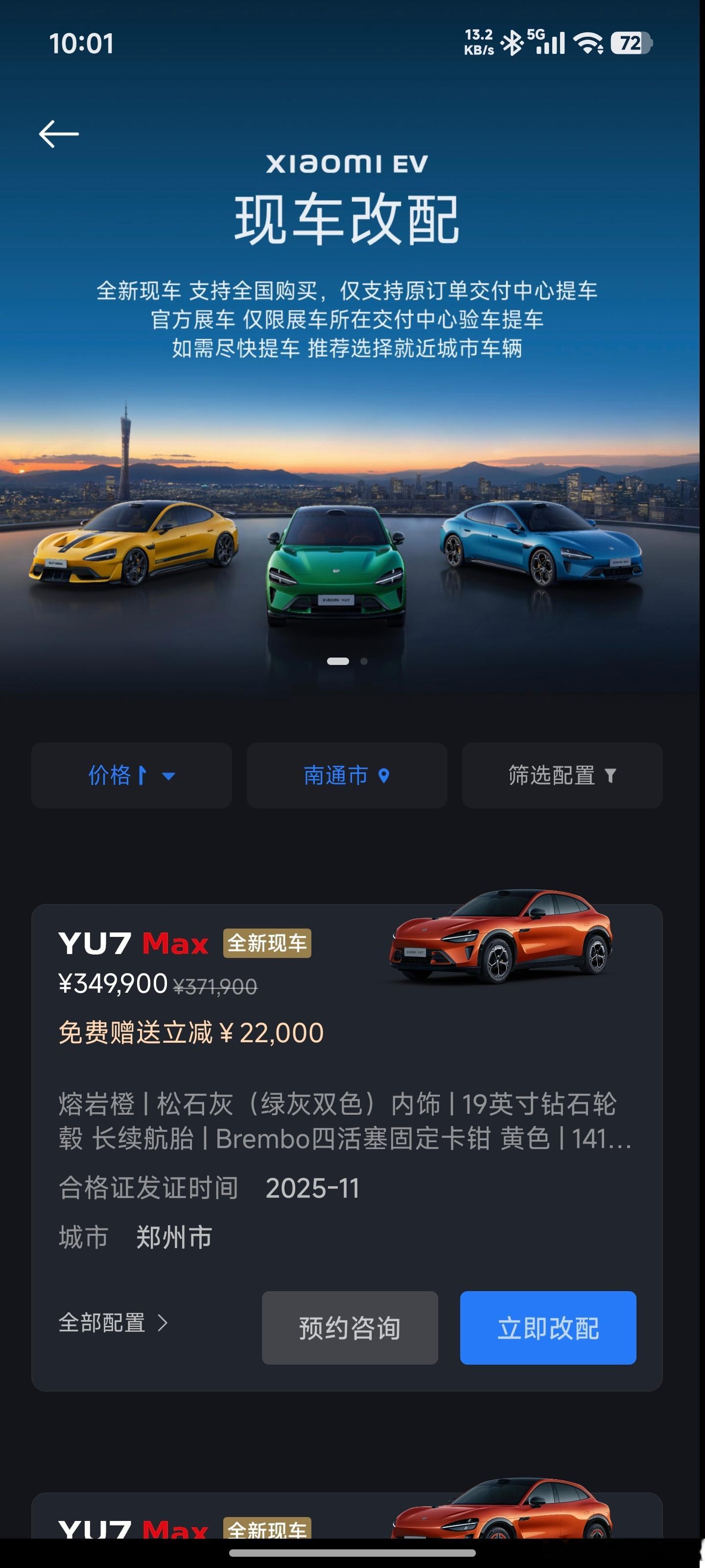 话音刚落,刚刚我看的标准版YU7改配现车,已经卖完了现在又只剩下YU7max了