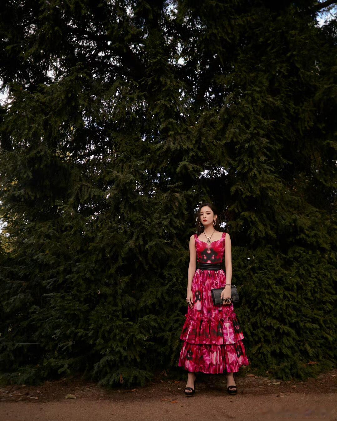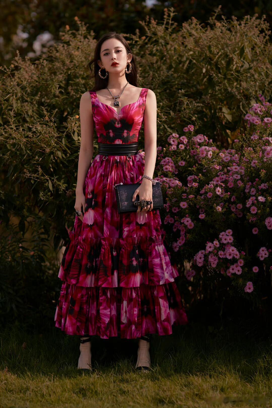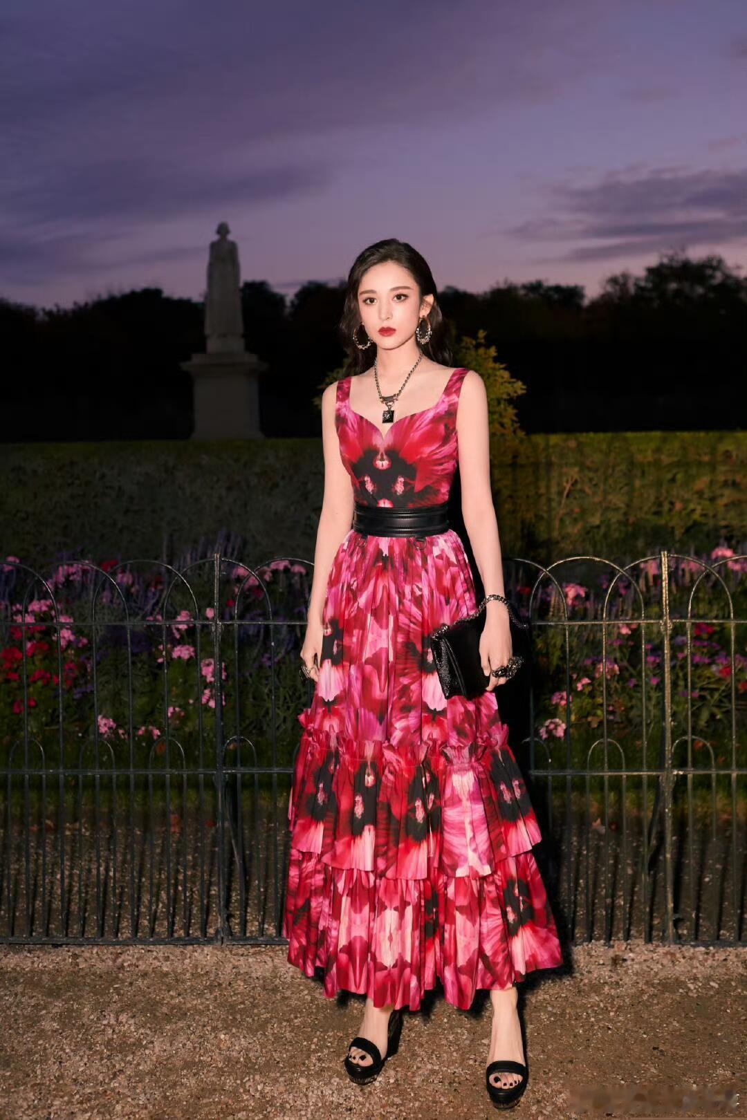 娜扎古力娜扎,夜色下的红玫瑰。不胖不瘦,这种大花裙也只有娜扎能够驾驭。娜扎|