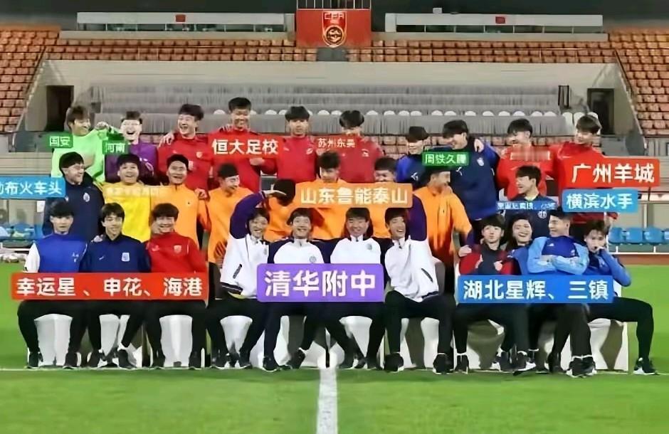 中国U17亚洲杯预选赛强势出线,这是被寄予厚望的一代。 出线后进行了大合影,都穿着自己球队的球衣拍的,我们看到清华附中、山东鲁能泰山、湖北星辉等中国足坛青训豪门。 有人说为何没有中国足球小将?董路在这里边起到了很好的宣传作用,他的功劳我们得认可,他的功劳就是组织了这里边很多孩子参加了比赛。组织比赛和青训有一些区别的。归根结底的青训,都在下边这张图里了,眼见为实。