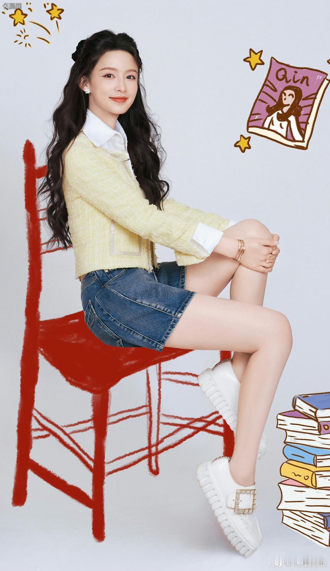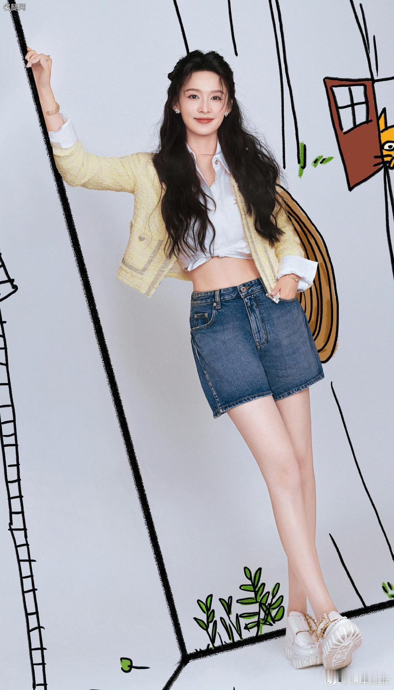 李沁小香风外套搭配牛仔热裤,清纯长腿姿演绎夏日青春风