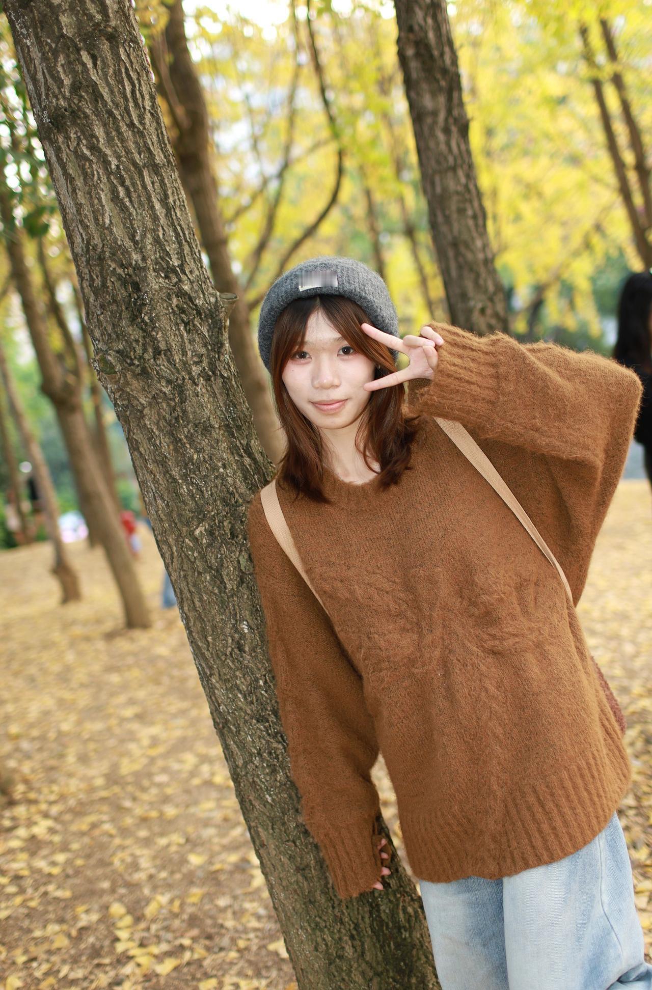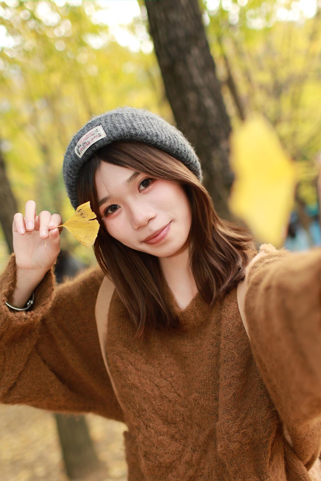 暖冬,银杏树林,小姐姐~~偶遇柳候公园,小姐姐微笑伴在风中,尽情释放自己!~~文