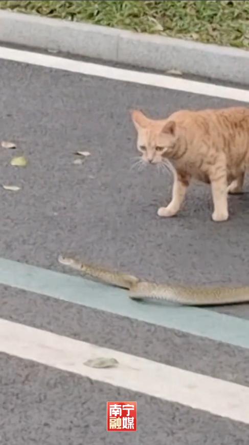 “太彪悍了!”12月2日,广西南宁,一市民在公园散步时,忽然看到前方有条蛇,吓得他拔腿就跑,紧接着,一只橘猫也发现了蛇,便径直走了过去,橘猫对着蛇接连出击,一番激战后又各自离开了。网友:现实版“龙虎斗”! 现在很多人喜欢在家里面养宠物猫,这些猫大多都是外国血统的品种猫,如果你养过就会发现,这些猫的抵抗力特别差,几乎无法在野外生存,相比之下的田园猫,战斗力就强得离谱。 当时天气晴朗,公园里又不少晒太阳、锻炼身体的人,大家各忙各的,丝毫没注意到有条蛇正在身边悄悄溜走。 一只在公园里休息的流浪猫,很快就察觉到了蛇的存在,它不紧不慢的朝着蛇走了过去,先是试探性的发起了攻击,在发现对方没有威胁后,就玩了一会儿,或许是觉得有些无聊,最终橘猫还是放小蛇离开了。 这时围观的市民才发现这里竟然有条蛇,在大家议论纷纷时,已经有人拿了捕蛇夹过来,最终将其成功抓获。 在很多人的印象中,蛇都是非常凶猛的,而小猫则是可爱的,殊不知它们的野外生存能力极强,蛇类、鸟类等,都属于猫的捕食对象。 虽然现在天气已经凉了不少,但南方地区仍有蛇类在活动,建议大家外出时多注意一下脚下,以免被蛇咬伤。 信息来源:《猫蛇“狭路相逢”龙虎斗!结果......》南宁融媒