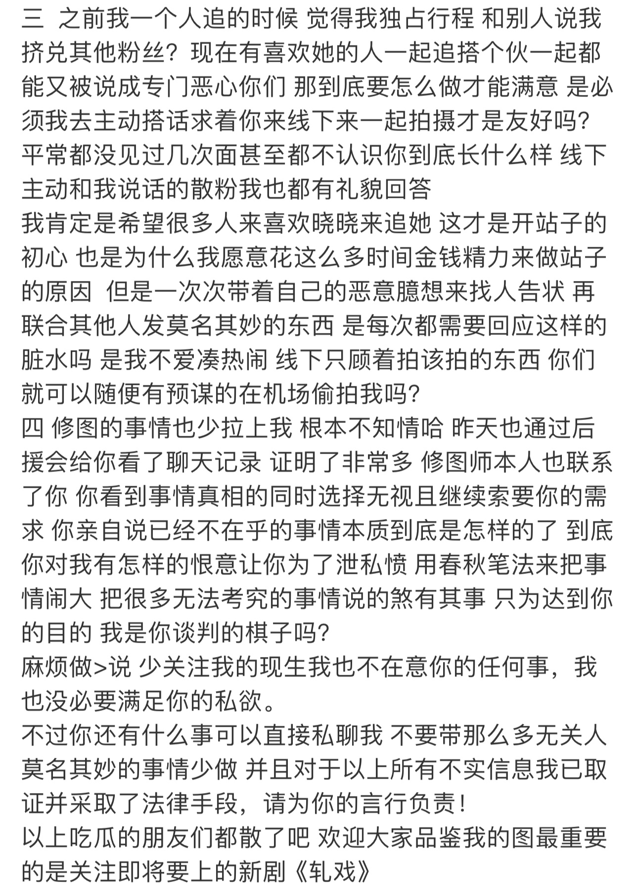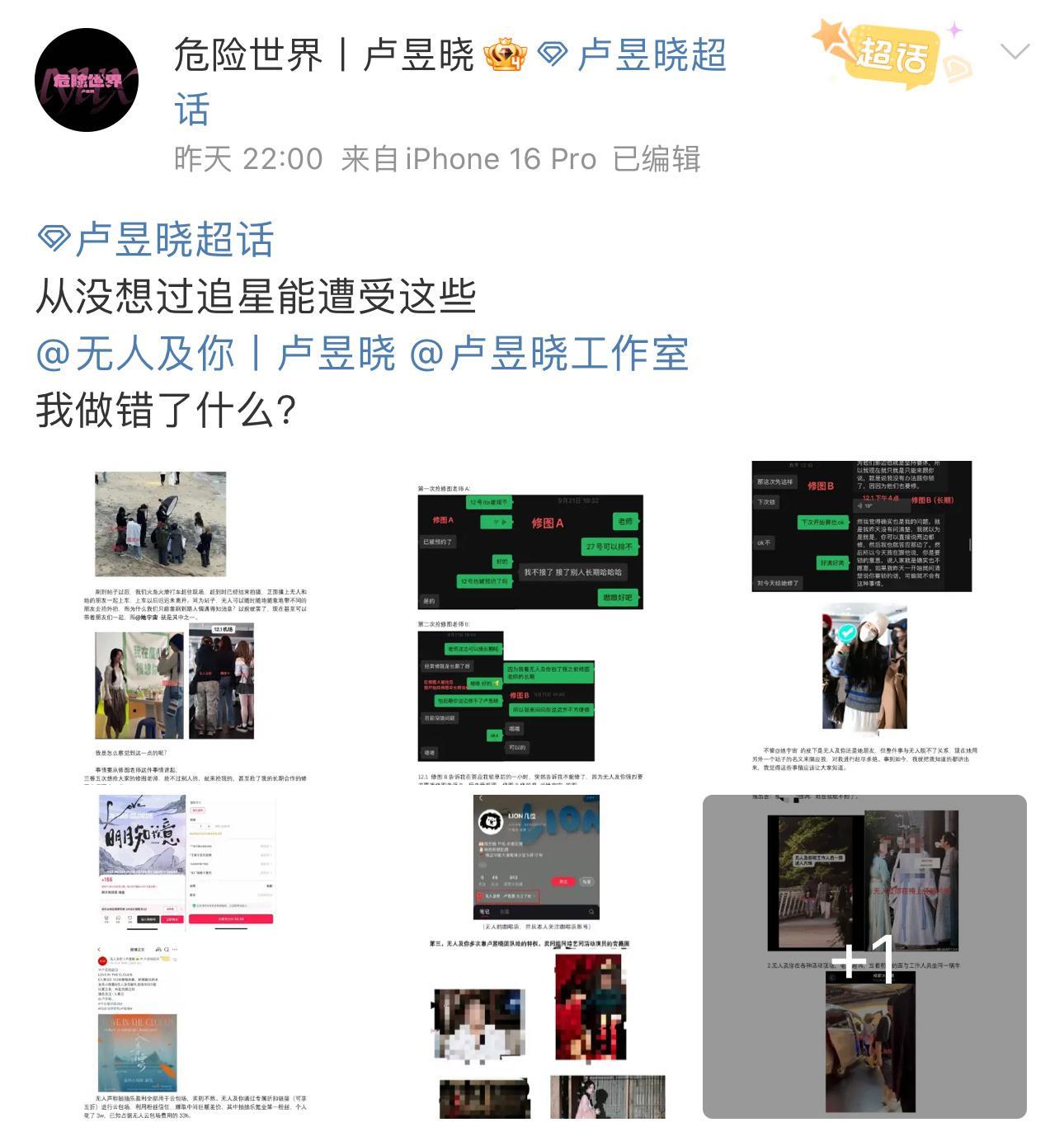 卢昱晓站姐“无人及你”回应了“危险世界”喊话:1.否认和他人一起辱骂卢昱晓2.否认贩卖抽抽乐从中赚取巨额差价3.否认挤兑粉丝4.抢修图的事自己并不知情卢昱晓站姐无人及你发文回应卢昱晓站姐无人及你回应危险世界喊话