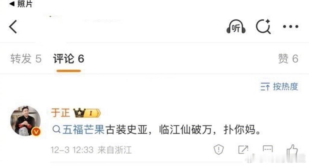 于正破防怒怼网友,并喷脏话:《五福临门》芒果史亚,《临江仙》破万。这几天,关于“《国色芳华》与《水龙吟》谁是芒果史冠”已经引发巨大热议,如今于正率先认证《五福临门》是芒果史亚。