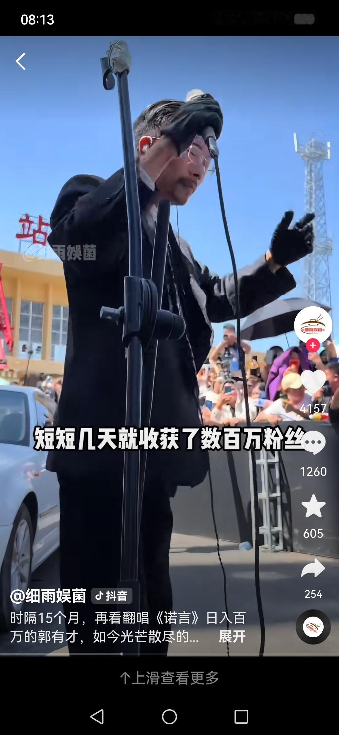 泡沫散尽后,日入百万的郭有才,活成了流量时代的“清醒标本” 菏泽南站的铁锈风还在,但曾把这里挤成春运现场的人潮,早已散了。去年5月,郭有才靠一首《诺言》一夜爆红,直播间在线30万、日入百万,连废弃车站都成了网红打卡地;如今他的直播间,黄金时段在线仅几千,9.9元的袜子喊半小时才卖出几单,落差大得像一场梦。 人设崩塌是他跌落的导火索。网友扒出他早有300万注册资本的传媒公司,并非直播里“睡桥洞、搓过背”的穷苦草根;宝马X5、女友的卡地亚手镯,更是戳破了“底层逆袭”的滤镜,粉丝直呼“被情怀骗了” 版权争议成了压垮他的最后一根稻草。翻唱《诺言》狂赚200多万却未付版权费,环球音乐的律师函、音著协的维权名单,让他从“情怀歌者”变成“侵权者”,账号健康分仅剩75分,随时面临限流。 他也试过挣扎:成立新传媒公司、发原创歌《岁月与你》、搞文旅直播、捐20万做公益,甚至报编曲班提升唱功,可流量始终没回暖。如今他盘算着Plan B:要么做原创拿版权,要么把南站改成怀旧打卡地,最坏就回村种山药拍日常。 褪去顶流光环,他成了流量时代的镜子——有人看到草根逆袭的易碎,有人读懂人设泡沫的虚妄,而他自己,正学着在平凡里重新找立足的底气。热点话题 郭有才巡演