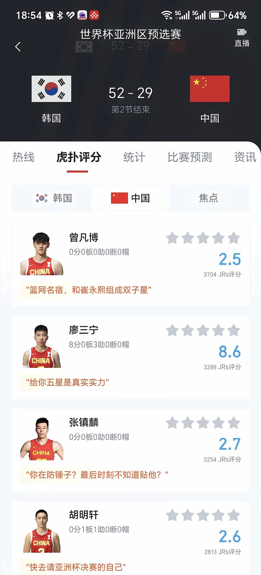 中国男篮打韩国真给我看笑了2024-2025赛季CBA常规赛国内球员得分榜前14的球员里面,只有胡金秋一人在国家队中,请问郭指导,选人的依据到底是什么?国家队到底靠谁得分?选了一堆CBA联赛都打不明白的防守蓝领上场打韩国队,全场最多时候落后32分,所以说好的防守大战呢?真的可以靠不得分的防守取胜吗?我随便选12人大名单都不至于被韩国队打的这么狼狈!大半夜真的气得不行!