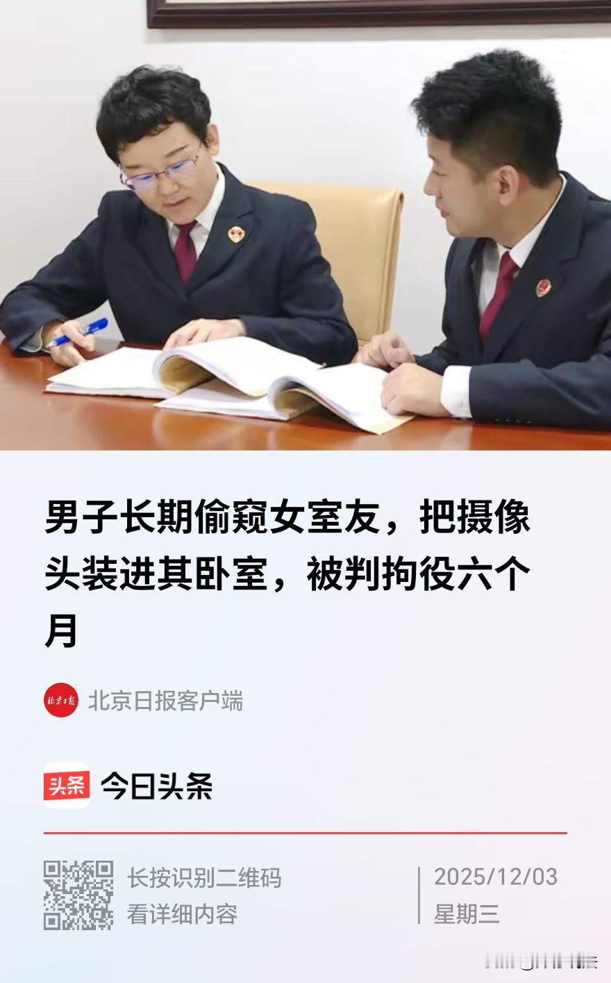 上海,一女子和男子合租,同住一套两室一厅,各自一间卧室,她习惯将备用钥匙藏在客厅。不料,男子暗中发现钥匙藏匿处,趁女室友上班,多次用这把钥匙潜入她的卧室,将一个微型摄像头悄悄藏在角落。从此,女室友上最私密的起居成了男子手机里随时可看的直播。男子甚至变本加厉,将摄像头移装到两人共用的卫生间。女子偶然机会发现在洗手台盆下摄像头,惊恐报警。事后,男子因涉嫌非法侵入住宅罪被逮捕归案。 2024年的夏天,某小区一套普通的二室一厅里,租客张女士和吴某各自租住了一间卧室,共享着客厅、厨房、卫生间和阳台。 张女士住的次卧,虽然不大,但床、衣柜、书桌一应俱全,是她下班后卸下疲惫、享受独处时光的私人天地。 张女士习惯在出门时将自己的卧室门锁好,但为了方便偶尔遗忘钥匙,她将一把备用钥匙藏在了客厅一个不起眼的小盒子里。 这本是一个寻常的生活习惯,却未曾想,这个小小的举动,早已被同住的吴某默默记在了心里。 吴某与张女士平日的交集不多,无非是公共区域偶遇时的简单寒暄。 在张女士看来,这不过是都市合租中常见的、保持适当距离的室友关系。 然而,表面的平静之下,吴某的内心却滋生了不该有的念头,他开始有意无意地观察张女士的生活规律,留意她何时出门、何时归来。 2024年7月,吴某终于等来了他认为“安全”的时机,他趁张女士外出工作之际,轻车熟路地从客厅的盒子里取出了那把备用钥匙。 随后,吴某拿着这把钥匙打开了张女士的房间门,,但他并非盗窃财物,而是小心翼翼地将一个小小的摄像头安装在房间内一个隐蔽的角落,调整角度,确保能拍摄到卧室内的私密场景。 完成这一切后,他悄无声息地退出,锁好门,将钥匙放回原处,仿佛从未踏入。 自此,张女士最 私 密的卧室生活,变成了吴某手机APP上可以随时点击观看的“直播”。在随后的近一个月时间里,吴某多次故技重施,利用备用钥匙进入张女士房间,调试摄像头位置,以确保“画面质量”。 吴某沉溺于这种病 态的偷 窥中,将室友的隐 私当作满足自己私 欲的消遣,而张女士在浑然不觉中。 2024年8月4日晚上9点多,吴某的行为进一步升级,竟然将摄像头从张女士的卧室取出,转而安装到了两人共用的卫生间内。 次日,张女士像往常一样进入卫生间洗漱,低头俯身时,洗手台盆下方发现了一个微小异物闪光,仔细查看后才发现是摄像头。 没有丝毫犹豫,张女士选择了报警。 警方迅速介入,具有重大作案嫌疑的吴某被依法传唤至派出所。 在证据面前,吴某的心理防线崩溃,对其多次偷拿钥匙进入张女士房间安装摄像头,以及在卫生间安装摄像头进行偷 窥的犯罪行为供认不讳。 2025年1月9日,该案被移送至检察院审查起诉。 很快,检察院以非法侵入住宅罪对吴某提起公诉。 法院会如何判决呢? 《刑法》第二百四十五条规定,非法搜查他人身体、住宅,或者非法侵入他人住宅的,处三年以下有期徒刑或者拘役。 法院指出,张女士所住的次卧虽位于合租套房内,但其通过门锁与公共区域形成了明确、连续的物理隔离,她外出即锁门,并以备用钥匙保管控制准入,这实质建立了“封闭性屏障”。 合租关系本身不否定单间的独立权限,公共区域的共享,不等于私人房间的开放,张女士对次卧的独占使用,已使其脱离“公共区域”范畴,转化为私人领域。 关键的是,刑法保护“住宅”,重在保护生活安宁,而张女士在次卧中的活动如更衣、休息等具有高度私密性,理应予以保护。 法院认为,张女士所住的次卧属于住宅范畴。 法院进一步指出,吴某偷拿钥匙、多次潜入房间,并在房间安装摄像头,直接破坏了居住安宁与隐私,情节比短暂闯入更为恶劣。 吴某明知房间为张女士私人使用,却故意偷钥匙进入,具有侵入的直接故意,符合非法侵入住宅罪的构成要件。 最终,法院判决吴某构成非法侵入住宅罪,判处拘役六个月。 有人说,吴某已经被追究刑事责任了,那么其在卫生间安装摄像头等行为就不需要追责任了。 答案当然不是,除了刑事责任外,还可以追究吴某的治安责任及民事责任。 《治安管理处罚法》第四十二条规定, 有下列行为之一的,处五日以下拘留或者五百元以下罚款;情节较重的,处五日以上十日以下拘留,可以并处五百元以下罚款:……(六)偷窥、偷拍、窃听、散布他人隐私的。 可见,吴某在卫生间安装摄像头等行为,与非法侵入住宅侵害的是不同法益,两个独立行为,可以分别追责,而吴某的行为属于治安违法,依法可以处拘留及罚款处罚。 此外,结合《民法典》第一千零三十二条等规定,吴某的行为侵害了张女士的隐私权,张女士有权主张赔礼道歉、赔偿损失等侵权责任。 对此,您怎么看?