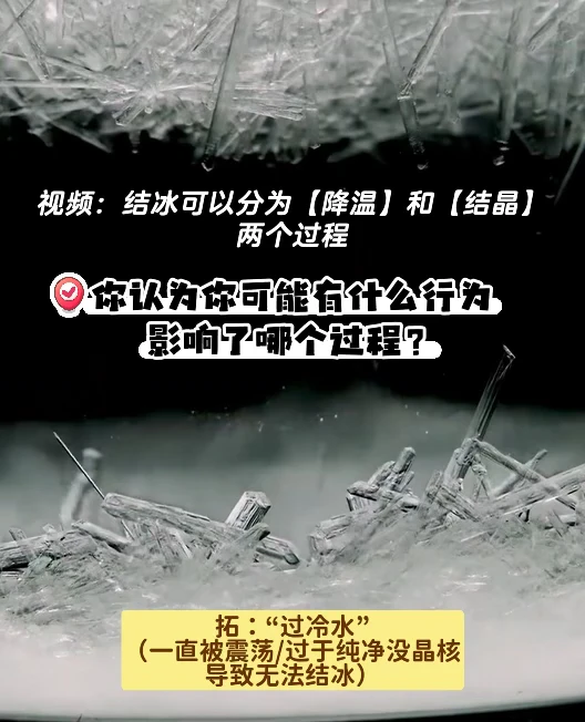 [集美R]:老师做的实验是在0℃“准点结冰”的。你认为你可能有哪些行为,在哪个过程干扰了水结冰?