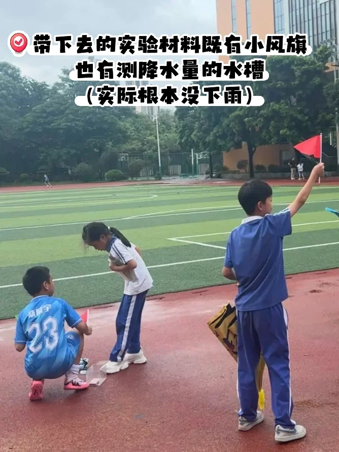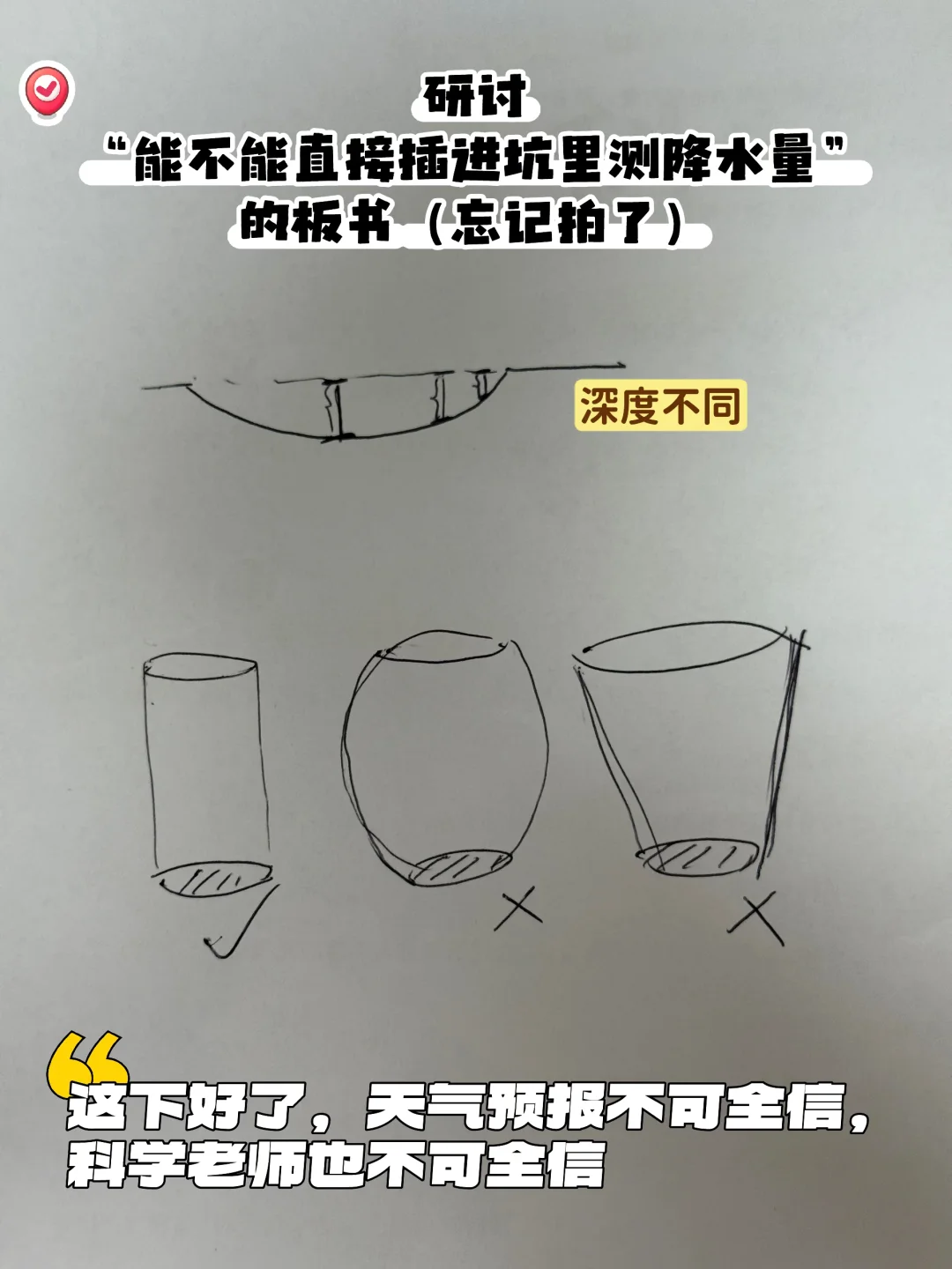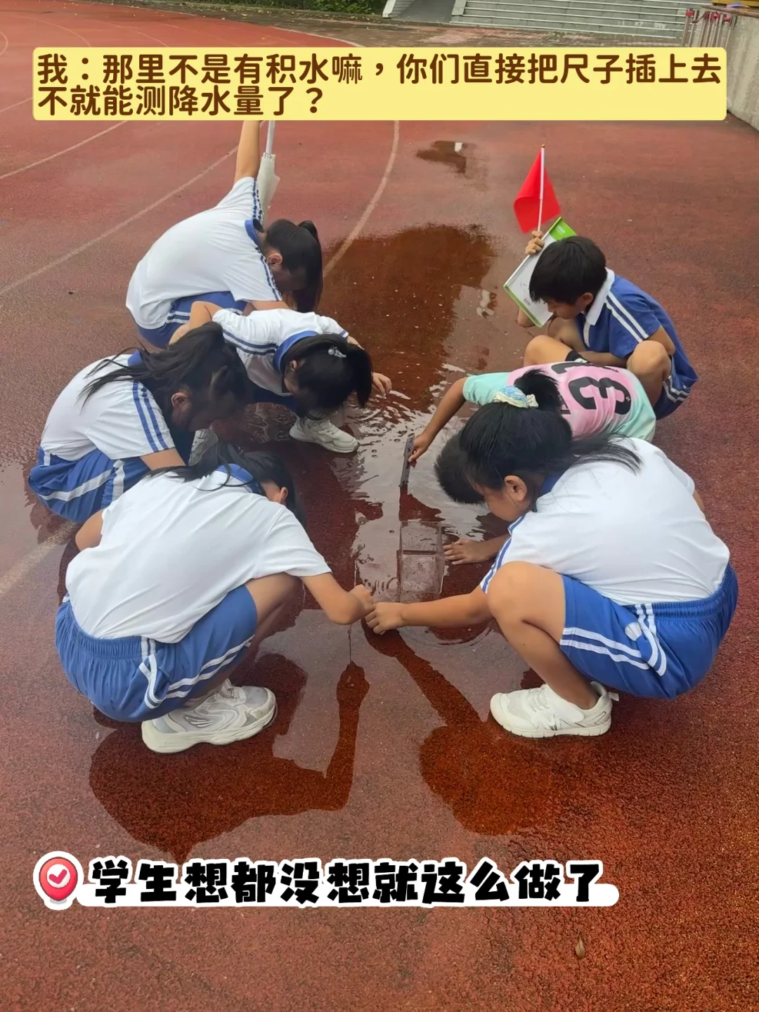 还恶作剧瘾犯了,让学生直接把尺子插进水洼里测降水量——反正降水量也是测【积水高度】嘛!