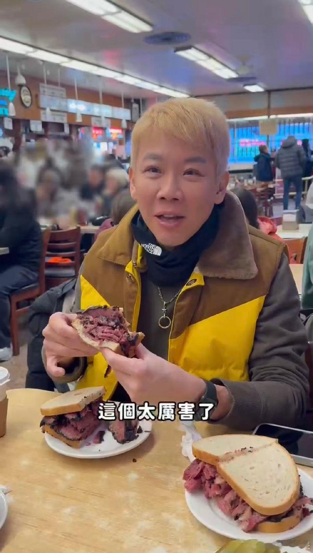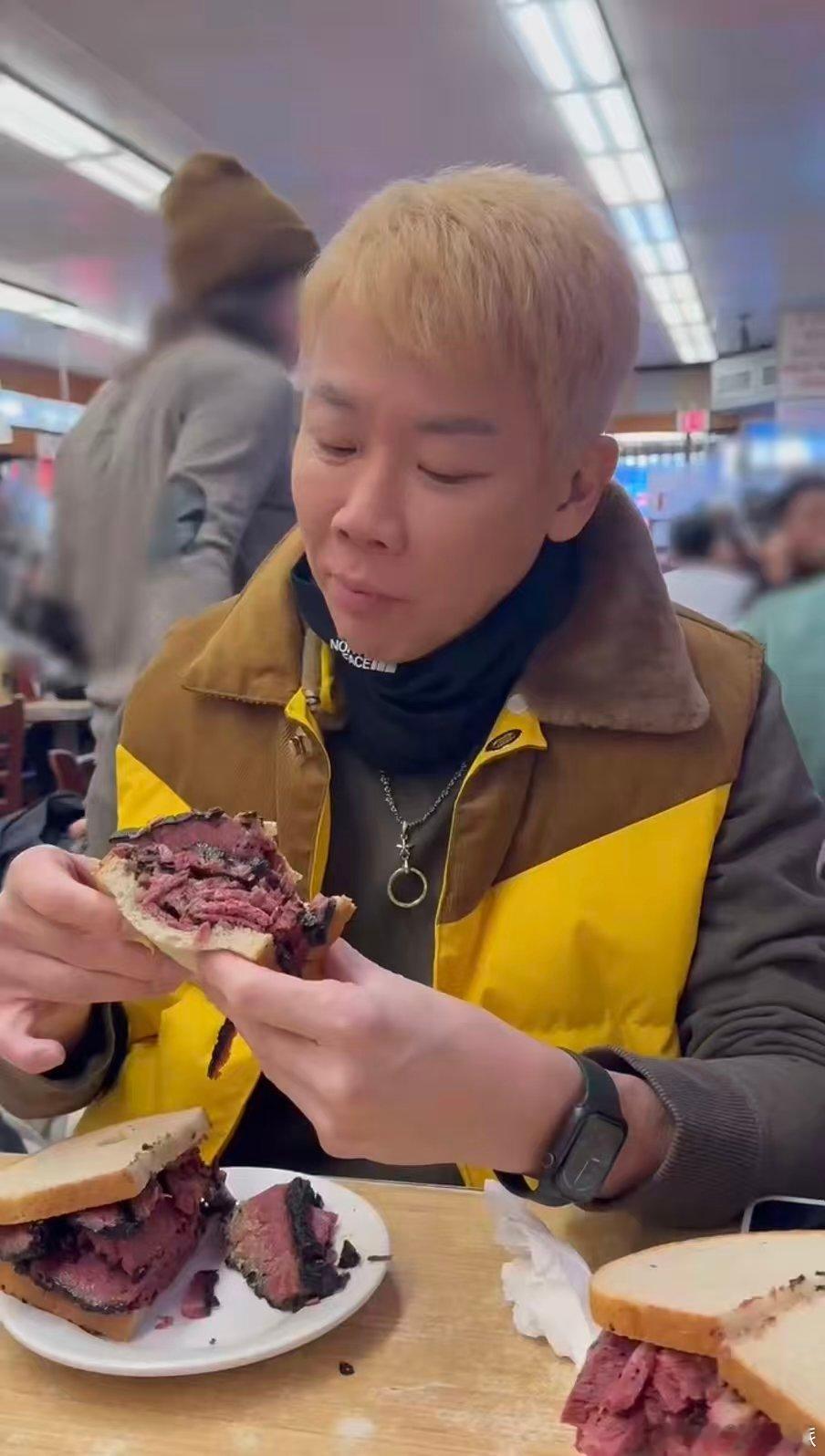 陶喆的三明治夹了一斤肉 哇塞!陶喆的三明治是来“称霸”美食江湖的吧!一斤肉把面包片撑得鼓鼓囊囊,和那比手臂长的煎饼果子堪称“绝代双骄”。“喆里陶美食”太香,哥别太会享受,快研发能闻味的手机救救我!