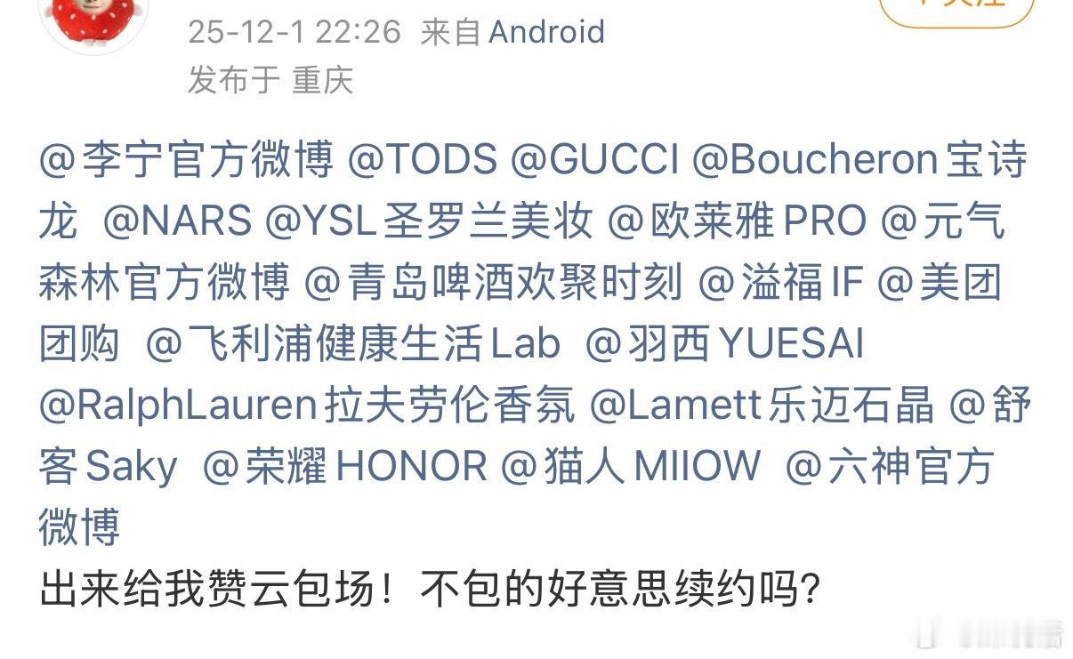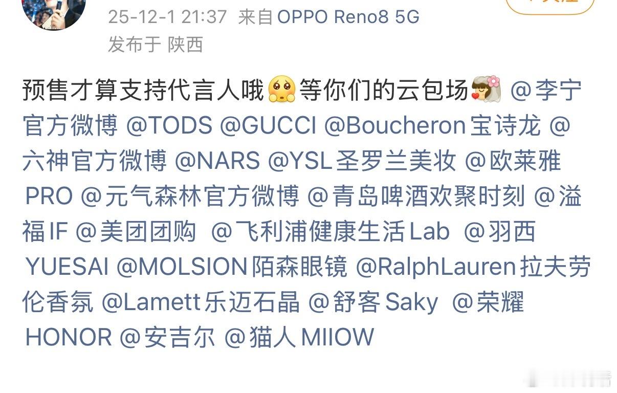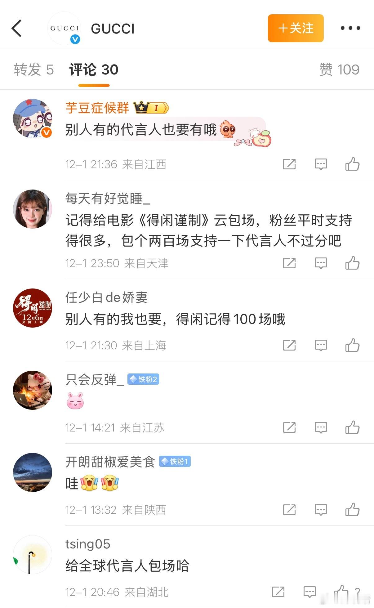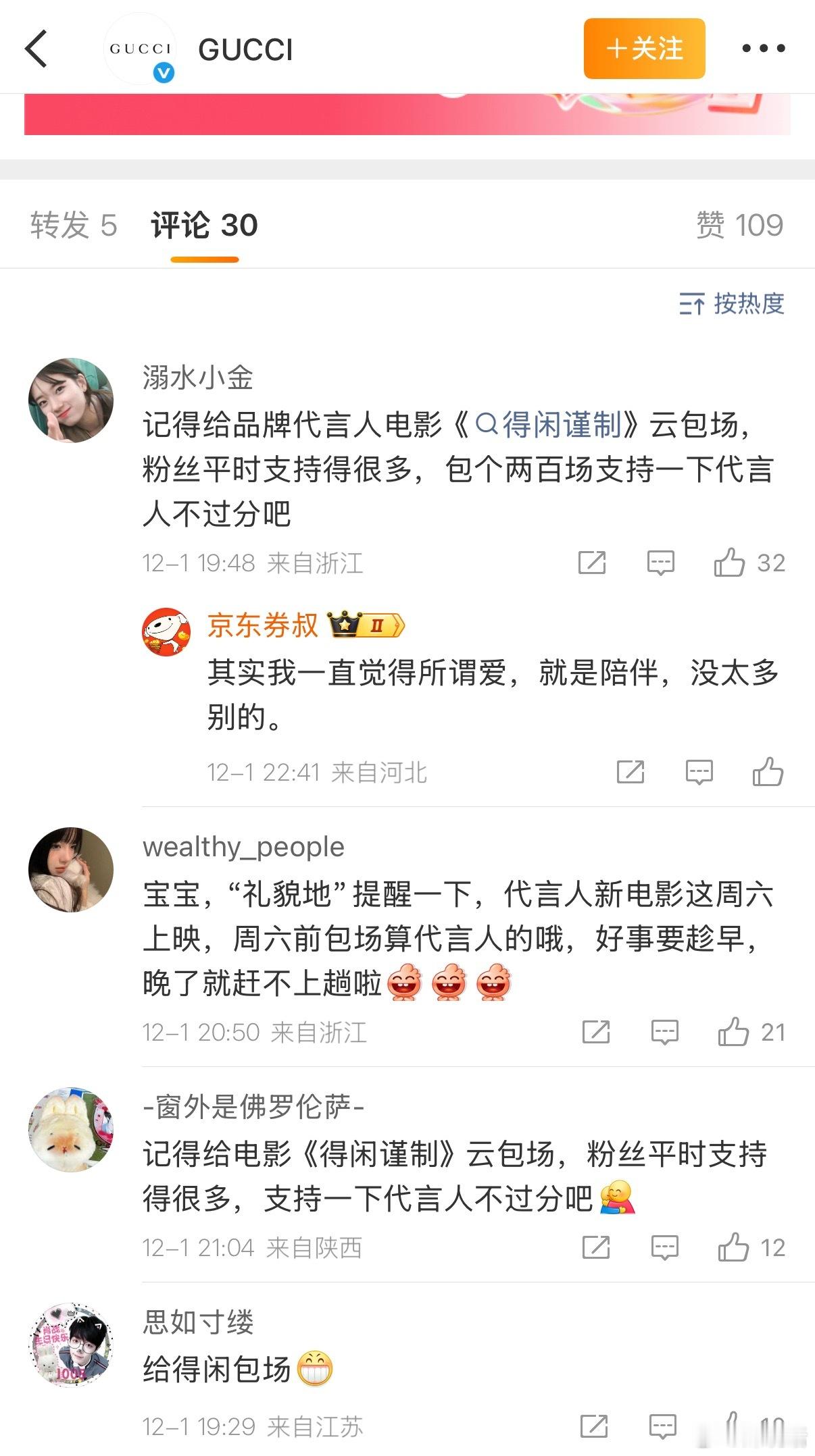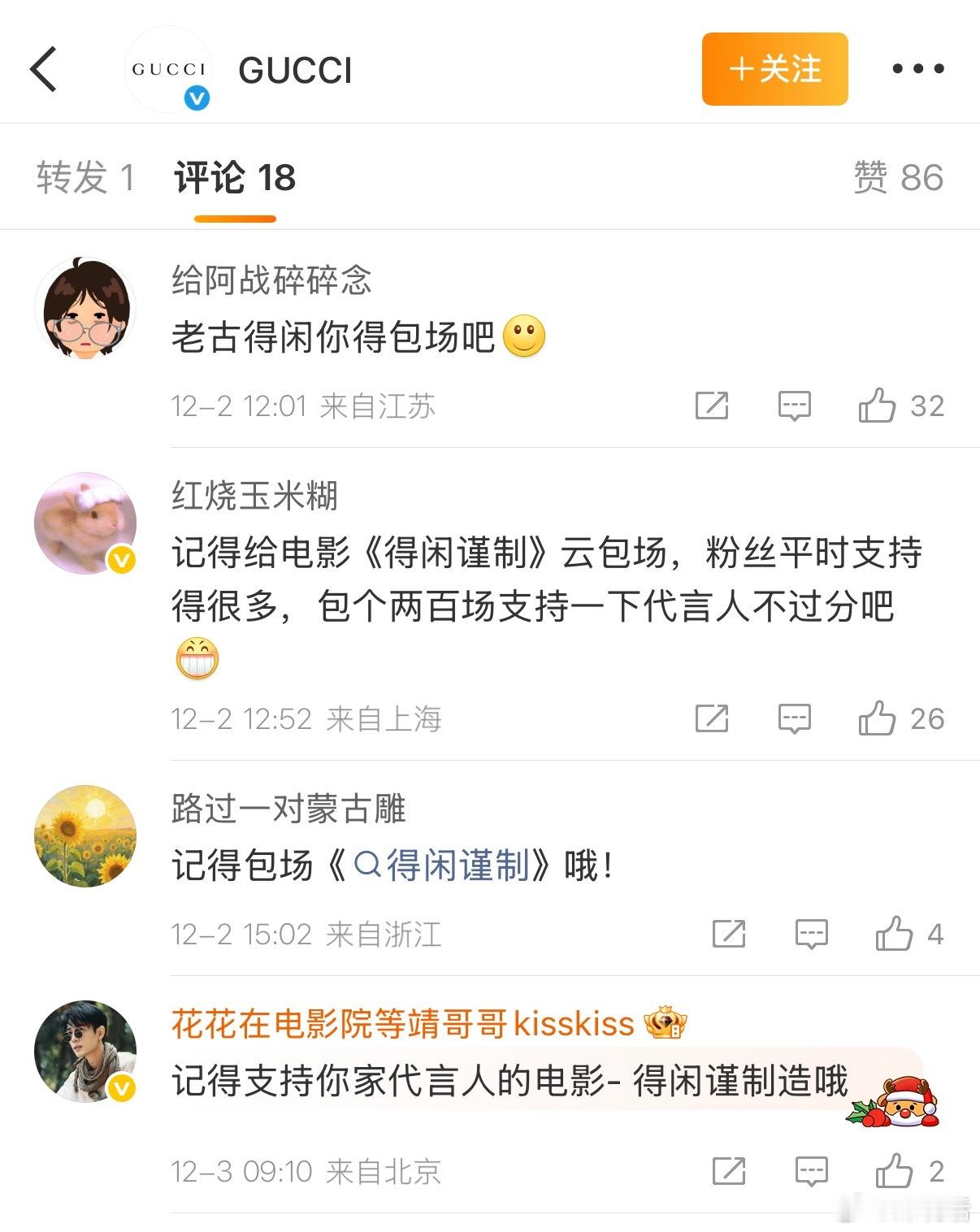 Gucci上次给张凌赫云包场,代言人肖战粉丝也要,正在艾特各大品牌目前《得闲谨制》预售票房9000w