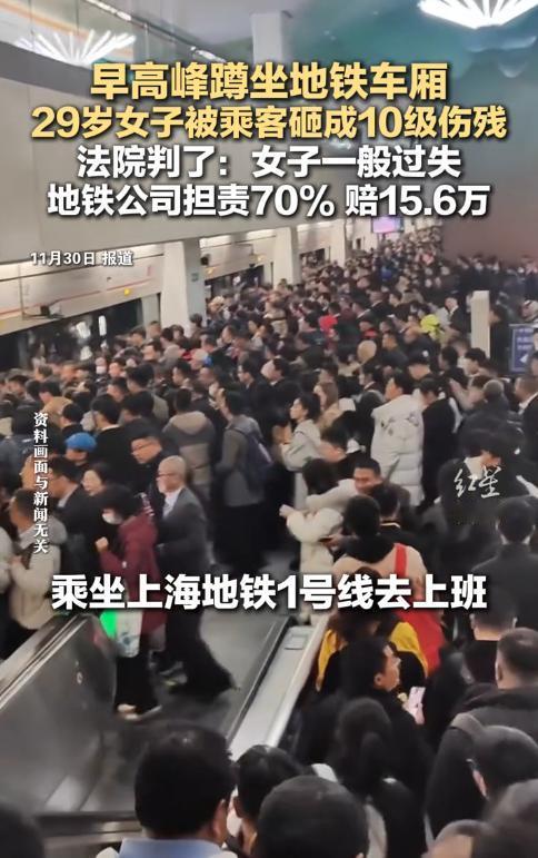 2024年7月,上海,一女子坐地铁上班时,身体突然不舒服,于是就蹲在了地上,没想到地铁运行过程中,因晃动导致一名乘客摔倒,砸在了女子身上,导致她腰椎骨折、腰部损伤,被鉴定为10级伤残! 29岁的小雅那天攥着早高峰的地铁票,脸色比车厢灯光还白。她扶着扶手试了两次都没站稳,最终在车门附近的角落蹲下,双手撑着膝盖,额头抵在手臂上——这个蜷缩的姿势,让她在拥挤的人潮里缩成了一个不显眼的“盲点”。 陆某当时正仰着头找路线图,手机屏幕的光映在他脸上。列车驶进上海火车站时轻微晃动,他像被抽走了支撑,整个人向前倒去,膝盖先撞上小雅的后背,随后上半身重重压了下来。周围乘客的惊呼声里,小雅只觉得腰部传来一阵碎裂般的疼。 医院诊断书像一张判决书:腰椎骨折,10级伤残。休养的几个月里,医疗费单据在桌上堆成小山,误工损失让原本拮据的生活雪上加霜。小雅对着镜子掀起衣服,后腰那道长长的疤痕,像在提醒她必须讨个说法。 法庭上,地铁公司的律师声音冷静:“列车晃动幅度符合标准,除陆某外无其他乘客摔倒。”他们调出监控,画面里小雅蹲在地上,周围人来人往,没人注意到这个异常姿势。“她没有出示身体不适的证明,蹲坐本身就是安全隐患。” 小雅的代理律师反驳:“早高峰车厢挤得像沙丁鱼罐头,工作人员在哪里?乘客不舒服时,地铁公司难道不该提供帮助?”她列出27万索赔清单,从医疗费到精神损失费,每一项都贴着票据。 法官敲下法槌前,盯着监控看了很久。“小雅作为成年人,应当预见拥挤环境中蹲坐的风险,承担30%责任。”停顿几秒,他继续说,“但地铁公司在高峰时段未尽到足够的安全管理义务,70%责任不可推卸。”15.6万元的赔偿金额,成了这场拉锯战的终点。 有人在网上发帖:“不舒服就该求助,蹲地上算怎么回事?”立刻有人反驳:“要是疼得站不起来,怎么求助?”争论像车厢里的回声,从法院蔓延到每个通勤族的手机屏幕。 其实类似的事早有发生。去年南京地铁,一位老人突发心脏病蹲坐,被匆忙下车的乘客带倒;杭州地铁早高峰,学生蹲系鞋带,被行李箱碾到手指。这些案例里,“蹲坐”都成了争议焦点。 地铁公司也有苦衷。上海地铁日均客流量超千万,高峰时段每平方米站6个人是常态。安全员要盯着屏蔽门、留意异常乘客、还要应对突发状况,“每个角落都看到”几乎不可能。有工作人员私下说:“我们能做的,只有反复广播‘站稳扶好’。” 但乘客的需求更现实。“要是有个‘临时求助铃’就好了,”一位常通勤的白领说,“不舒服时按一下,工作人员就能及时过来。”也有人建议车厢设“应急座位区”,用颜色区分,让需要的人能被快速识别。 这场官司像一面镜子,照出城市公共交通的两难:运营方要效率,乘客要安全,中间隔着拥挤的车厢和突发的意外。地铁公司后来悄悄增加了高峰时段的安全员巡逻频次,车厢广播里,“如有身体不适请联系工作人员”的提示音也比以前更频繁了。 小雅拿到赔偿那天,又坐了一次一号线。早高峰依旧拥挤,但她看到有安全员在车门处观察乘客状态,有老人上车时,立刻有人提醒“请扶好扶手”。她摸了摸后腰的疤痕,突然觉得,那些看不见的改变,或许才是这场意外真正的意义。 地铁门开阖间,每个人都是乘客,也都是自己安全的第一责任人。不舒服时别硬撑,看到别人不对劲多搭把手——这些简单的道理,有时要靠一次疼痛才能真正明白。