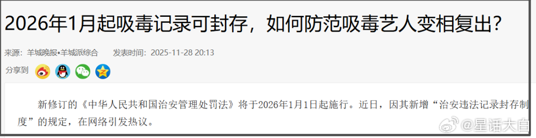 先来说说法规本身的解读。“违反治安管理的记录应当予以封存,不得向任何单位和个人提供或者公开,但有关国家机关为办案需要或者有关单位根据国家规定进行查询的除外”这里对于封存的违反治安管理的记录,给出两个例外。1、有关国家机关为办案需要;2、有关单位根据国家规定进行查询;第一点比较明确,需要“办案需要”才能查询违反治安管理的记录。但第二点就比较模糊,缺乏细则,什么才是“根据国家规定”,那么这里就存在一些细化空间。这个细化空间通常需要其他具体的“特殊法”来细化实施细则。所以首先给大家吃一颗定心丸,考虑到这次事情引发公众的广泛关注,也再次反应民众对于毒品零容忍的态度,所以在具体实施细则上,肯定是会充分考虑民意。这件事情,并没有因此就盖棺论定。这里需要解释一下一般法和特殊法。《治安管理处罚法》属于一般法,而《禁毒法》《禁毒条例》属于特殊法。特殊法,其法律效力高于一般法。通常一般法的法律适用范围大,特殊法的法律适用范围小,更有针对性。当一般法和特殊法出现冲突时,则以特殊法为优先。这次《治安管理处罚法》出来后,对于吸毒人员如何登记、管理,仍然还是要以《禁毒法》《禁毒条例》为优先。所以不用担心新规出来后,对吸毒人员就不管了,吸毒人员怎么管理,怎么戒毒,仍然还是看《禁毒法》《禁毒条例》。特殊法也可以在某些特定领域,成为一般法的实施细则。举个例子,这次“吸毒记录被封存”的事情出来后,不少人担心会不会出现“涉毒艺人复出”的问题。据报道,根据“特殊法优于一般法”的原则,涉毒艺人能否复出,主要取决于文旅、广电等部门的行业管理政策和法律法规,治安违法记录封存并不影响这些专门性、行业性的限制措施。比如,《演出行业演艺人员从业自律管理办法》。文旅、广电部门查询艺人涉毒行政处罚记录就属于“国家机关办案所需”,即便记录被封存,相关部门依然有权依法调取,并不会因新规而丧失监管依据。警方是否发布通报与治安记录是否封存无关,新规落地后,警方仍然有权就相关艺人涉毒情况进行警情通报。这里需要警惕的是监管执行环节可能出现的漏洞,要严防吸毒艺人变相复出,毕竟一些吸毒艺人一直在处心积虑的试探复出的可能。所以民众的担忧也是有道理的,是需要监管部门重视的。