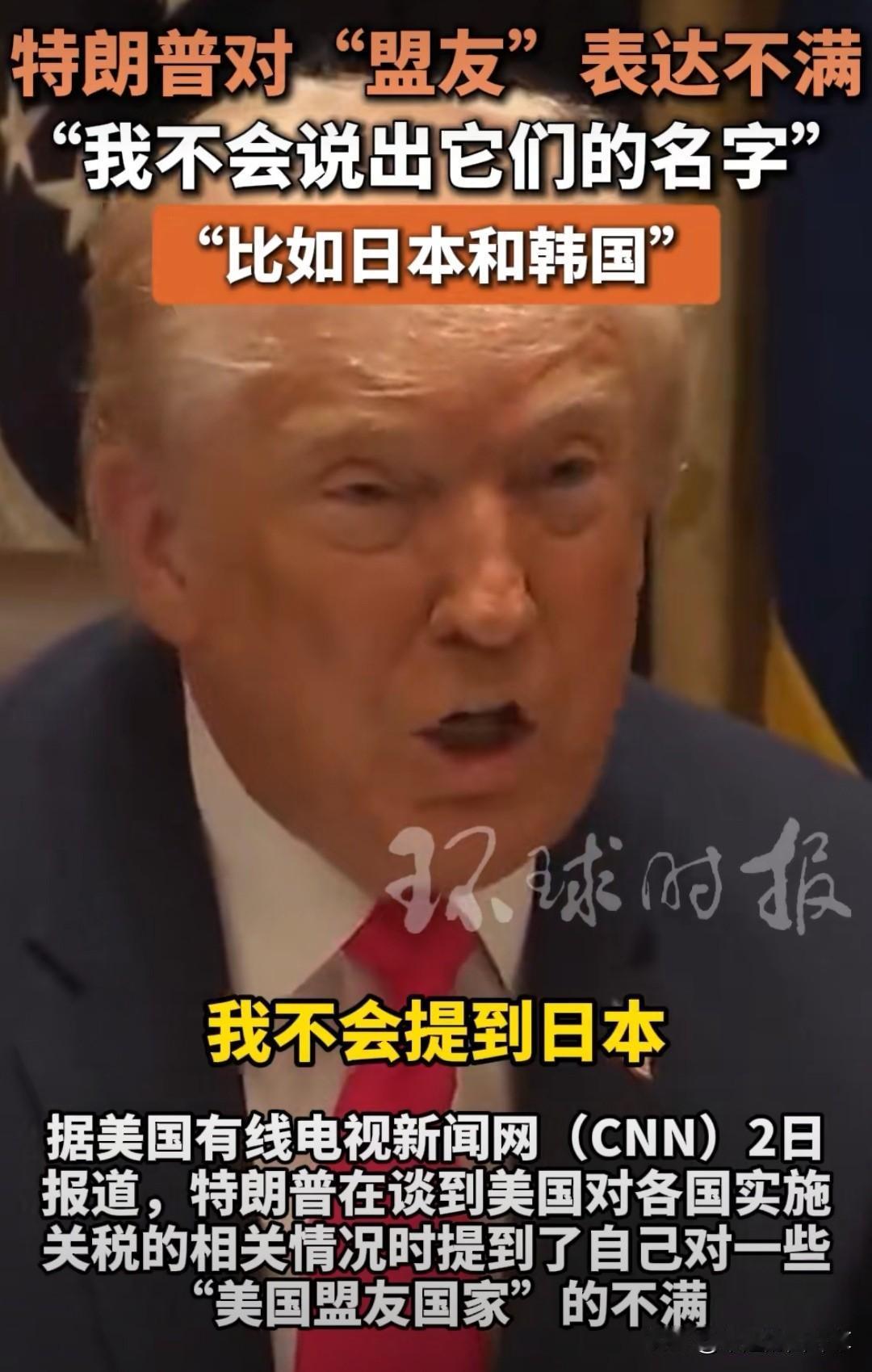 最近看国际新闻,我发现了一个挺有意思的现象,那就是特朗普说“不准备点名盟友”,结果转眼就把日本和韩国的名字说出来了。 他在内阁会议上一边强调“不会说出名字”,一边直接提日本和韩国,说它们多年来一直在“剥削美国”,视频里现场还有轻微的笑声,这操作看着挺矛盾的。这已经是近期他第二次敲打日本了,上回说“很多盟友不算朋友”,这回直接点名,哪怕日本之前做了经济让步,他还是不满意,日本现在估计挺头疼的。 你说这所谓的盟友关系,到底是真交情还是利益面前的互相算计?