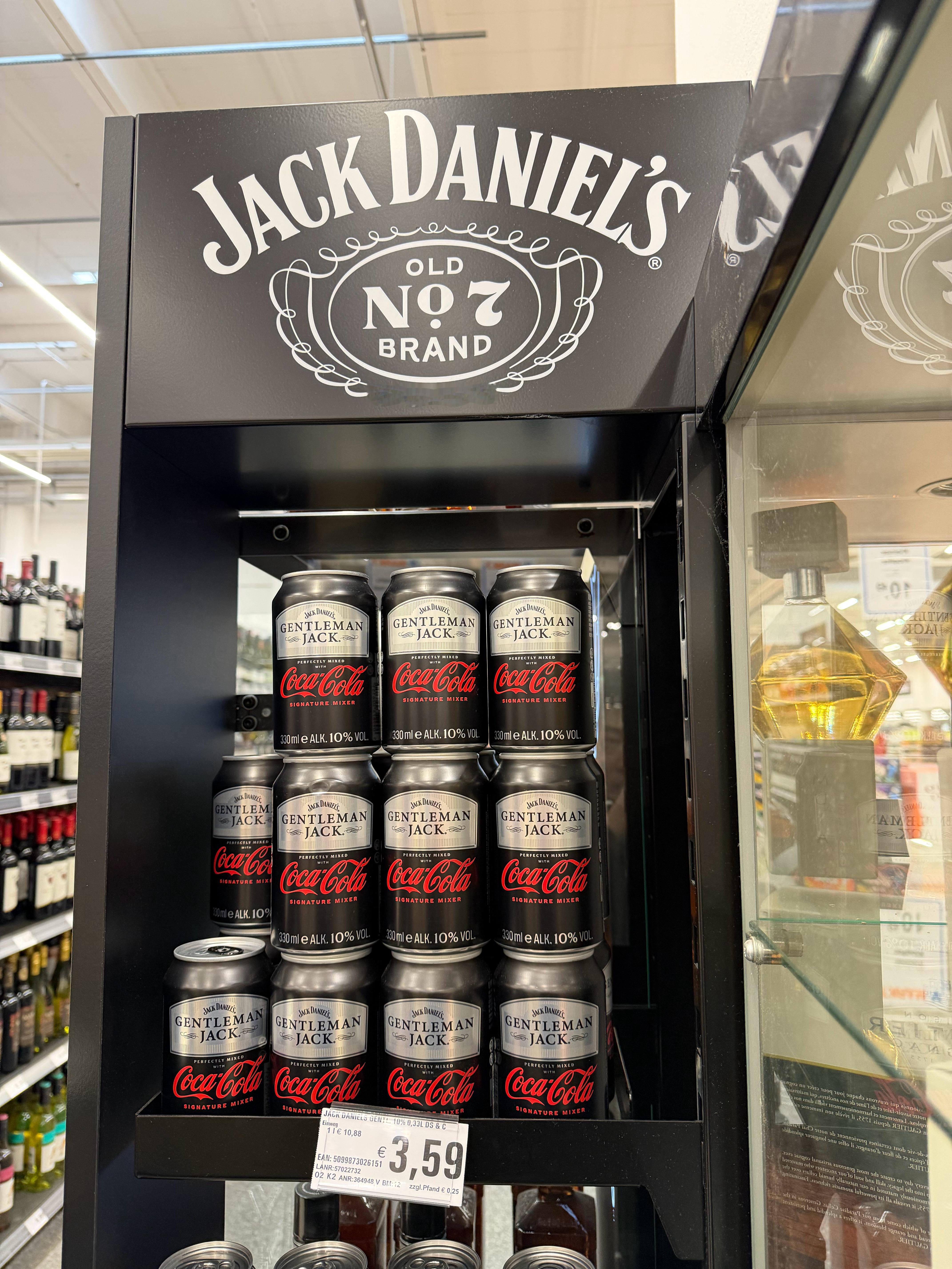 面对 杰克丹尼&可口可乐 联名的这个饮料,我愿称为之 资本主义的第一个陷阱。3.6欧元,离谱。 德国