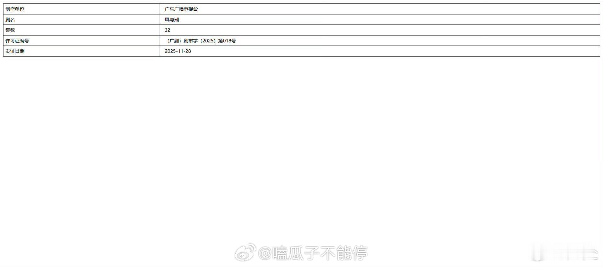 任嘉伦风与潮取得发行许可证了