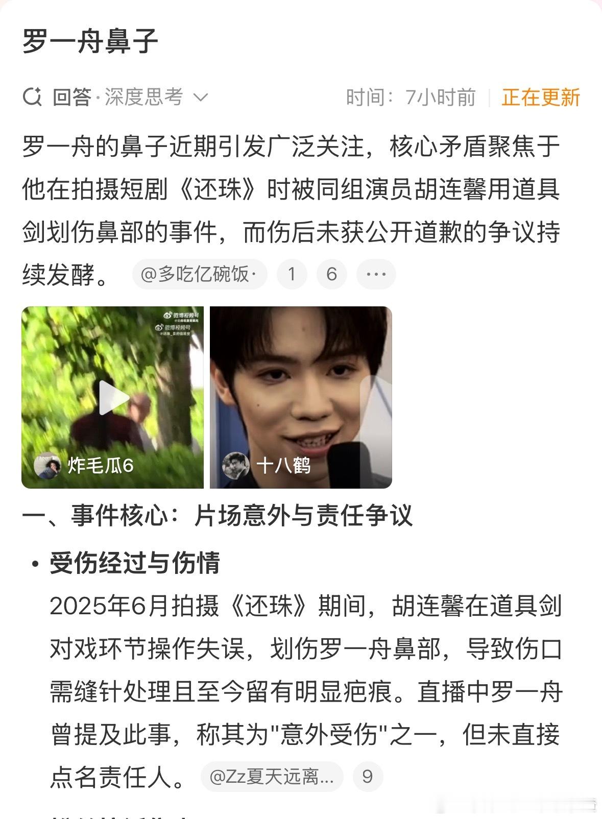 罗一舟在拍摄《短剧还珠》时鼻子意外被划伤,缝针留了疤。