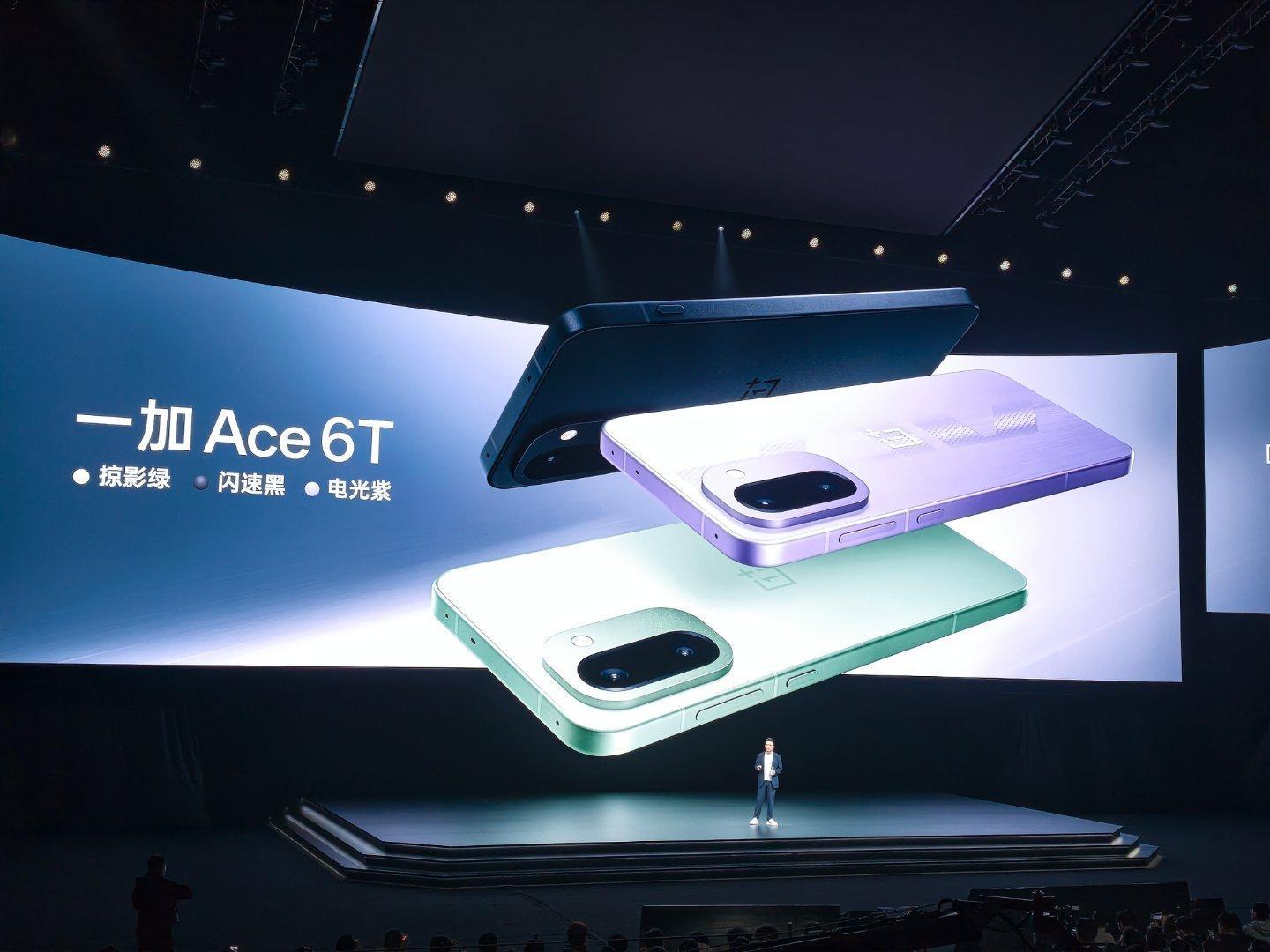 一加Ace6T 带来「掠影绿」、「电光紫」、「闪速黑」三款配色,延续简洁的设计风格,以Colorful Design多彩美学设计呈现全面旗舰质感。当然了~其实还有一款配色这里没说这次全球首发第五代骁龙8旗舰芯片。该芯片由一加与高通联合定义、联合研发、联合优化,双方在性能、游戏、影像等7大领域31个专项深度联调,全面优化用户体验。第五代骁龙8全面沿袭第五代骁龙 8 至尊版的顶级实力,采用行业最领先的第三代3nm制程工艺,第三代Oryon CPU 架构、最新一代Adreno GPU,拥有超强性能与能效,安兔兔跑分高达 356 万,性能稳居行业第一梯队。在此基础上,一加还将独家新一代「风驰游戏内核」写入芯片底层,配合自研潮汐架构与极光引擎,确保游戏与日常使用全程流畅。为支撑顶级性能,除了搭载第五代骁龙8处理器,一加 Ace 6T采用 LPDDR5X Ultra+UFS 4.1 组合,构成最新旗舰性能铁三角,即使多任务、重载游戏或4K剪辑也流畅无阻,实现全场景高性能体验 一加Ace6T新品发布